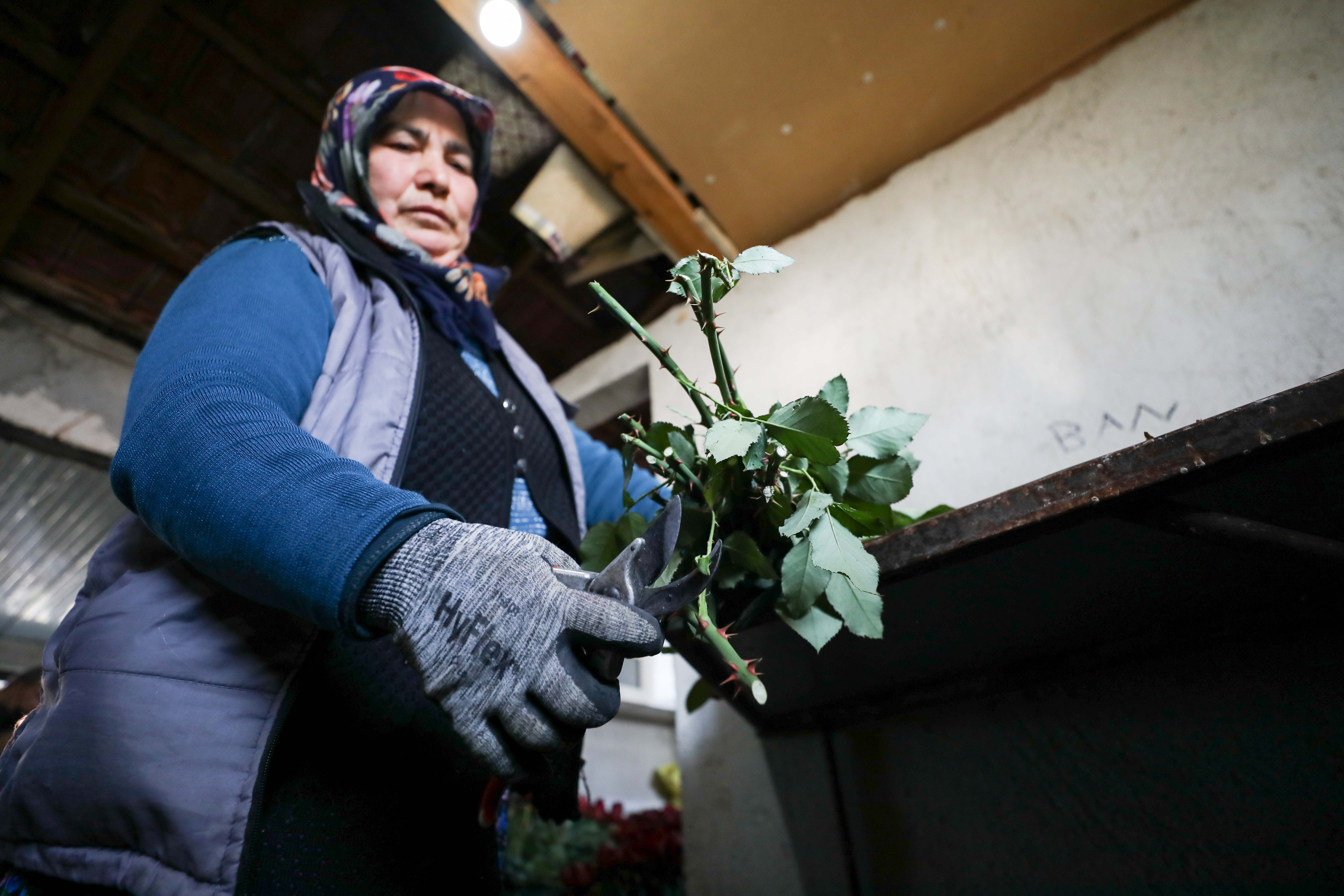 Sabah saatlerinde seralarına gelen üreticiler, ekim ayından bu yana özenle büyüttükleri gülleri topluyor. Toplanan güller, demet haline getirilip mezatlara götürülerek satışa sunuluyor.