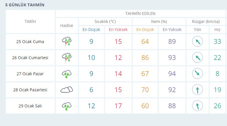 5 GÜNLÜK HAVA RAPORU