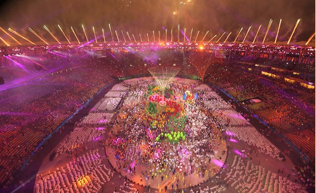 Lapa Su Kemeri, Kesmeşeker ve Corcovado Dağları gibi Rio de Janeiro kentinin simge yerleri ile olimpiyat halkasının koreografik şekilde sergilenmesiyle başlayan törende, daha sonra Brezilya'nın milli marşı çalındı.