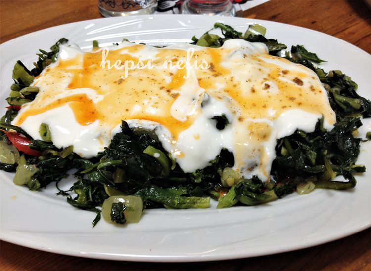 İlk yemek Karışık Ege Otları Kavurması. Bu kategoride olmazsa olmaz...