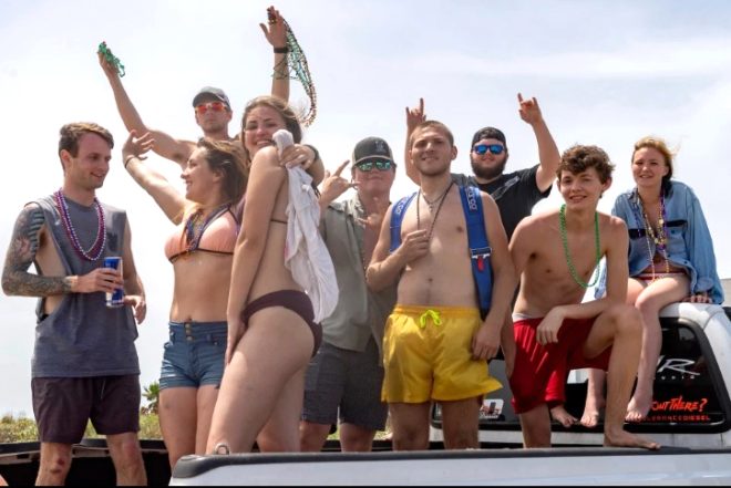 Virüsün en fazla can aldığı ülkede binlerce kişi üstlerini çıkararak araçlarının üzerine çıkıp alkollü kutlamalar yaptı.