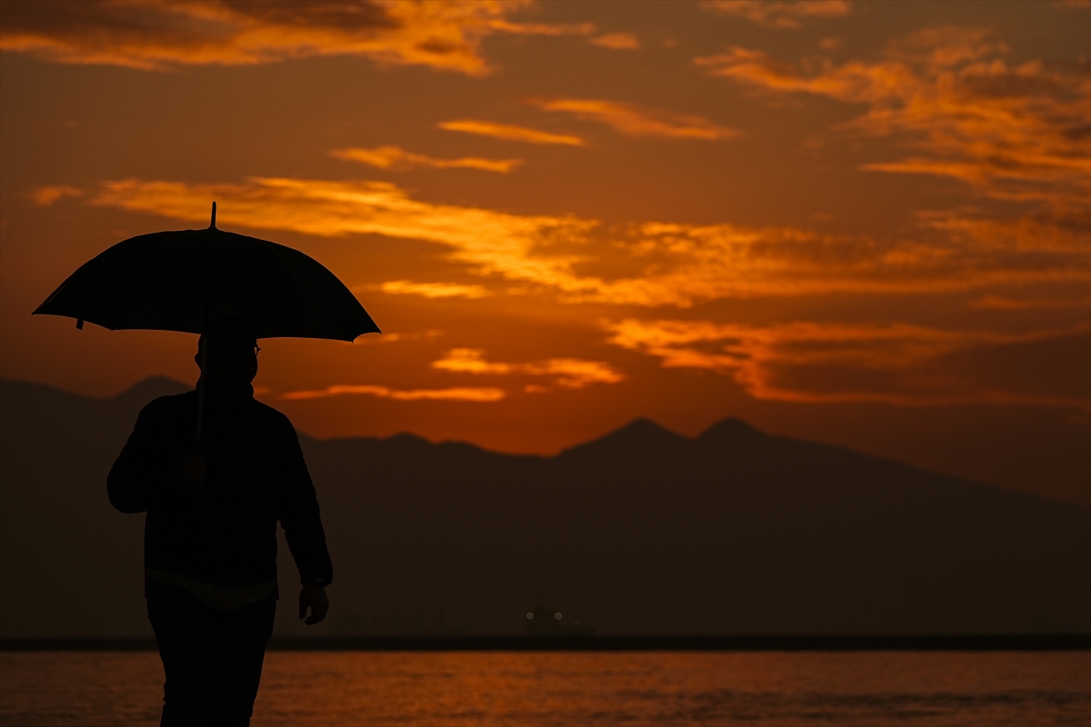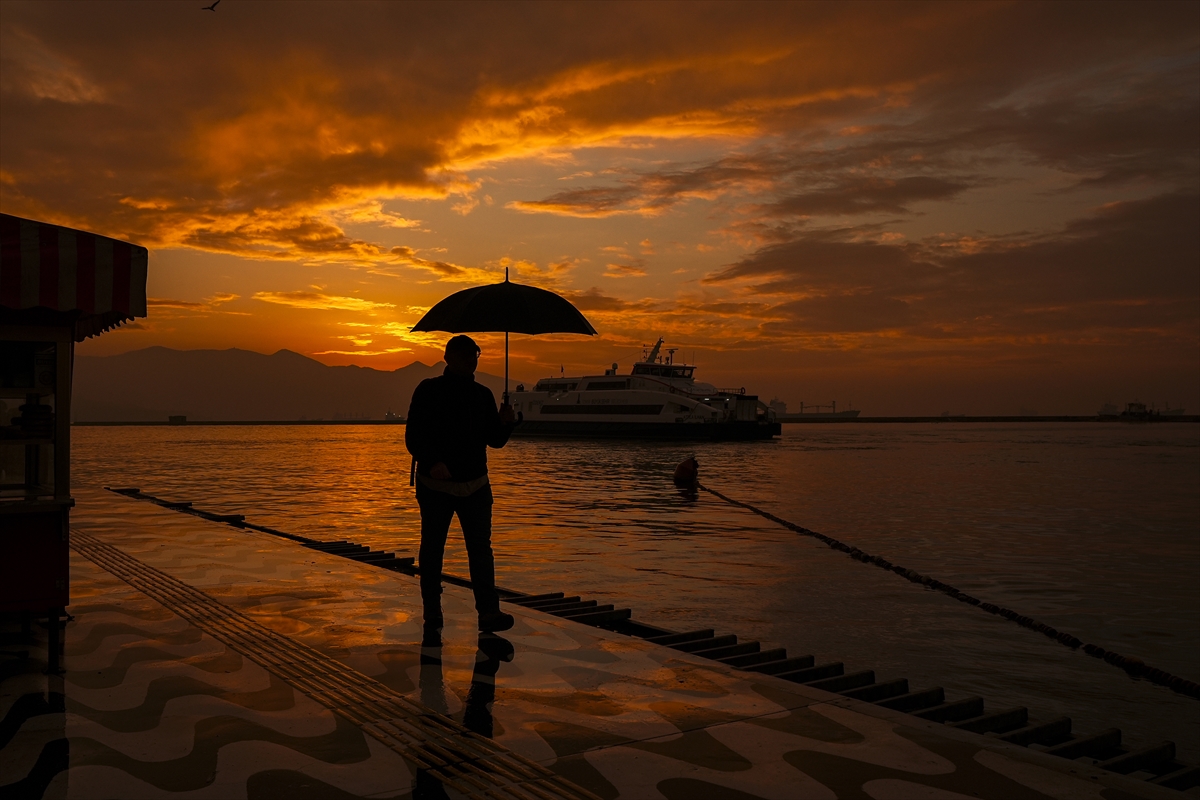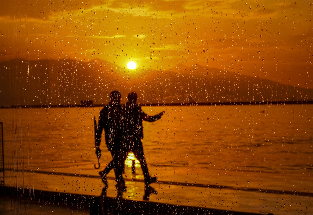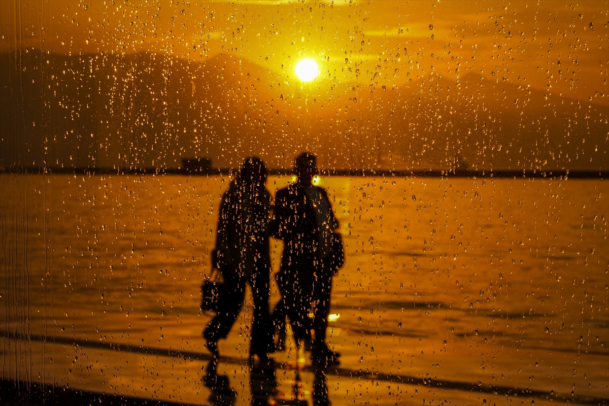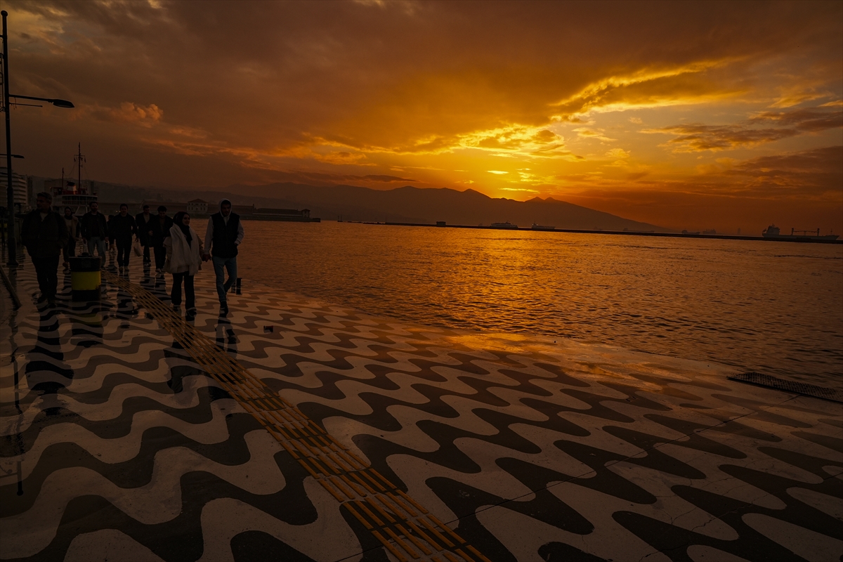 İzmir'de vatandaşlar ve turistler, gün batımında Konak ilçesindeki Tarihi Kordon Boyu ve çevresinde vakit geçirdi. Sağanak yağışın ardından oluşan kızıllık güzel görüntü oluşturdu.