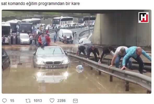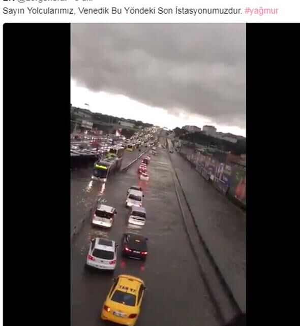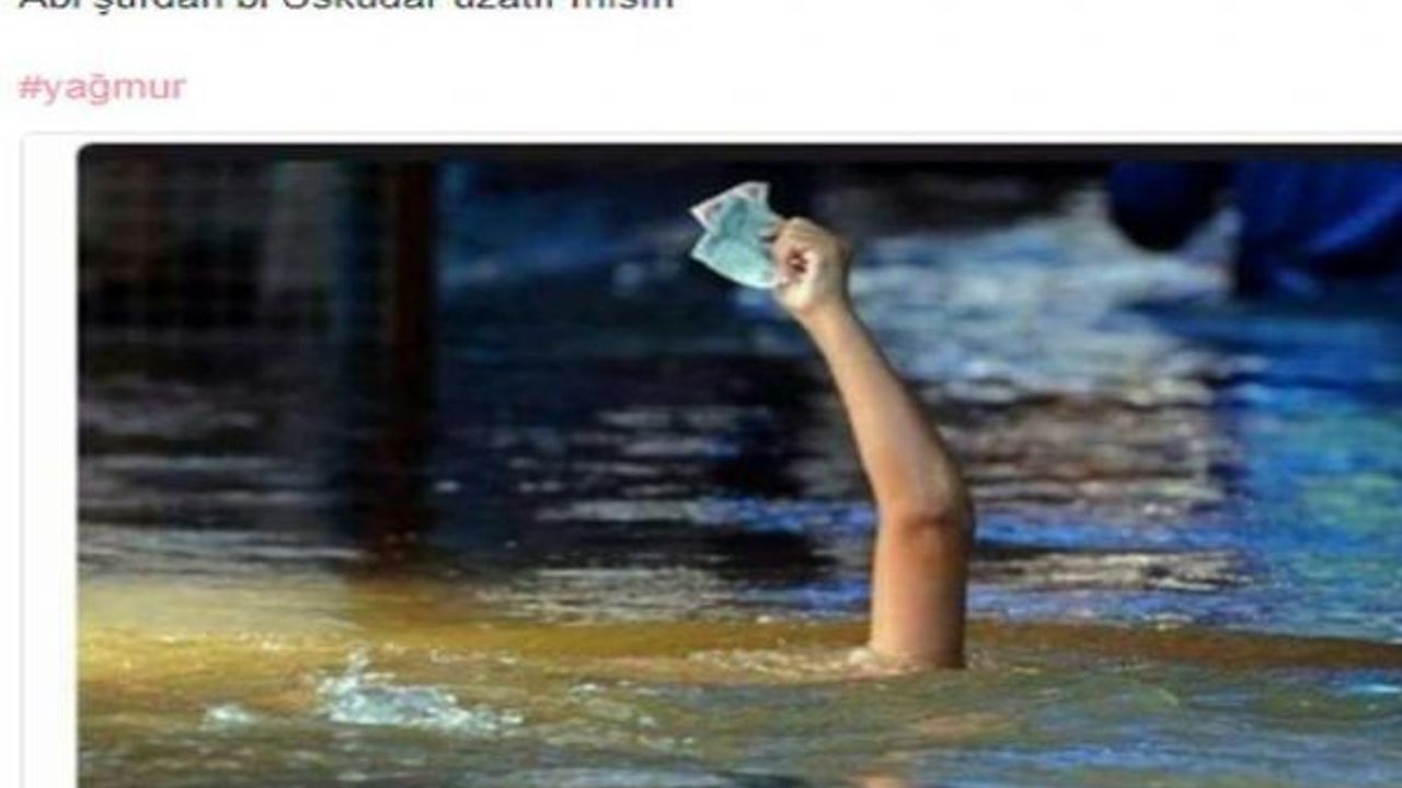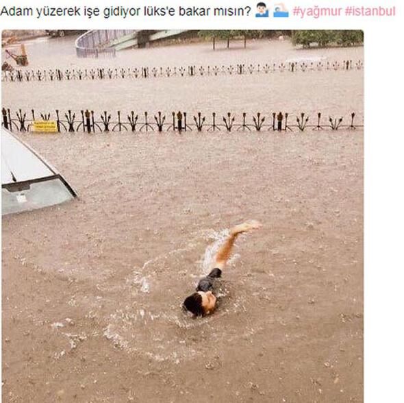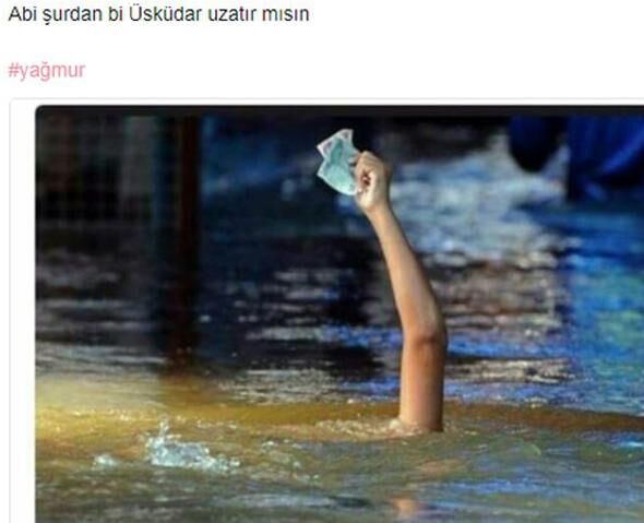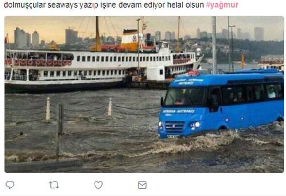 İstanbul'u sabah saatlerinde felç eden yağmur sonrası ortaya çıkan görüntüler sosyal medyanın bir numaralı gündemi oldu. Espriler havada uçuştu.