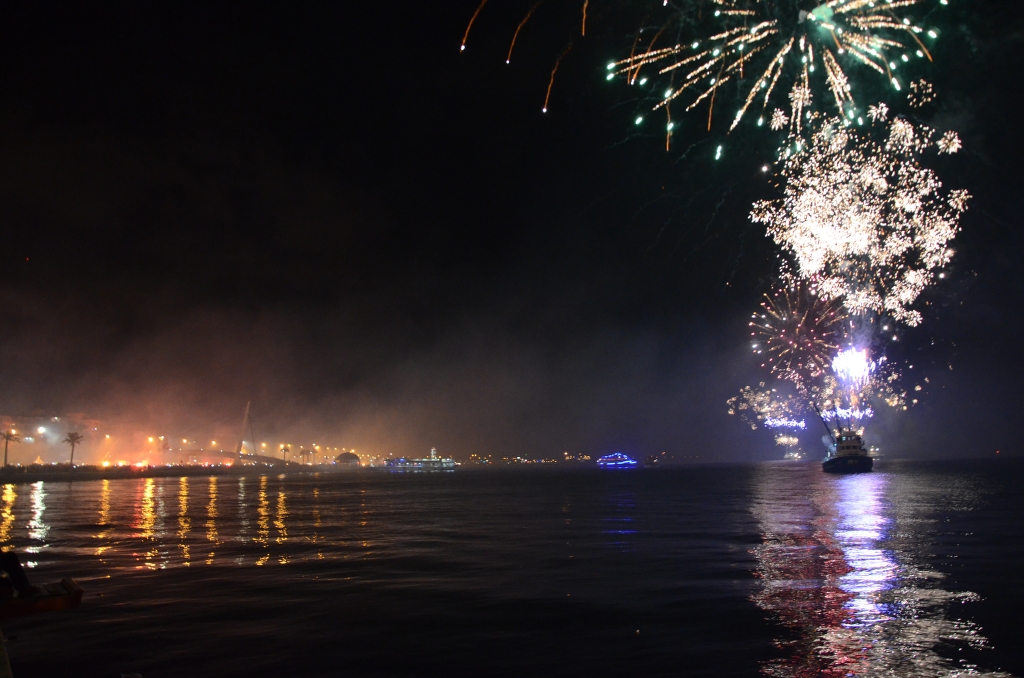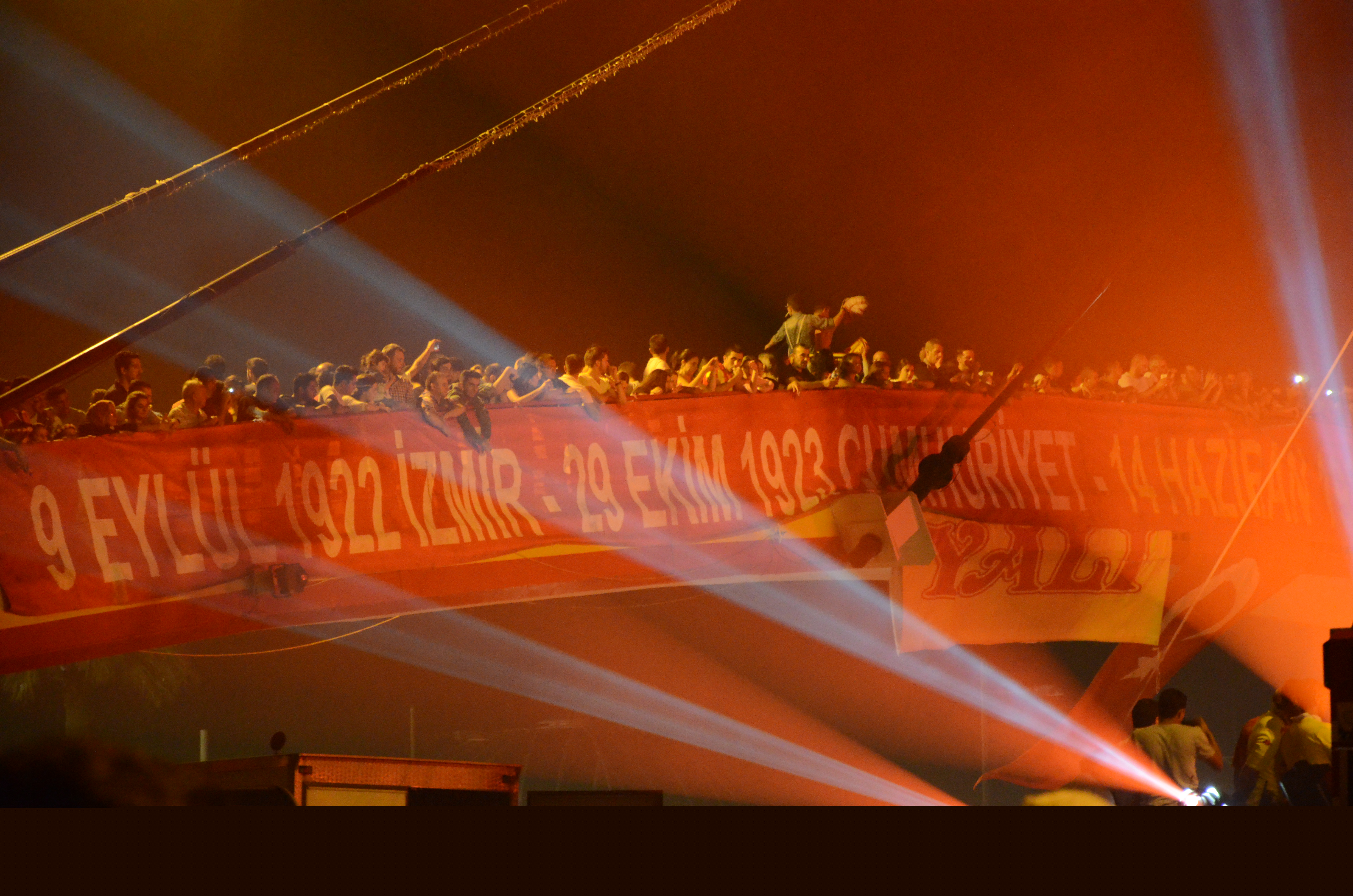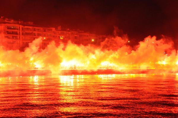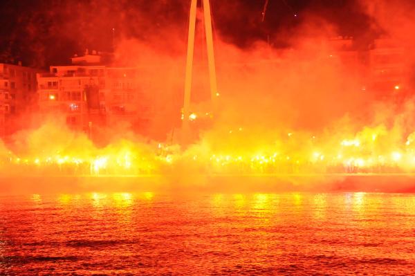 Göztepe Başkanı Sepil, yöneticiler ve teknik ekip de meşale şovu tekneden takip etti. Gece havai fişek ve çalınan marşlarla son buldu.