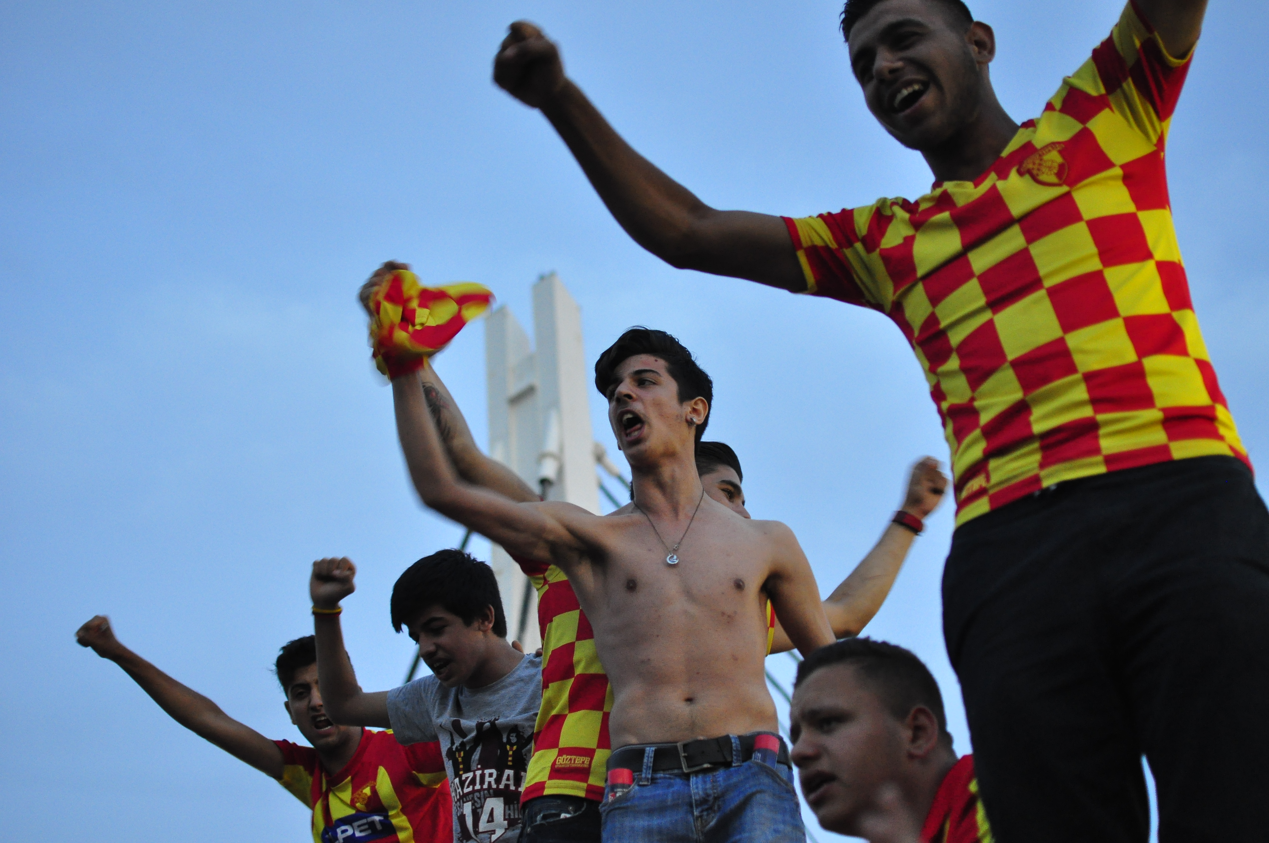 Başkan Mehmet Sepil ve Teknik Direktör Okan Buruk da taraftarların arasına gelerek kutlamalara ortak oldu. Saat 22.00’de ise Göztepe’ye gönül verenler meşale şova başladı. Yaklaşık 4 bin meşale yakan sarı-kırmızılılar geceyi aydınlattı. Susuzdede Parkı’na ise dev Göztepe arması yansıtıldı.