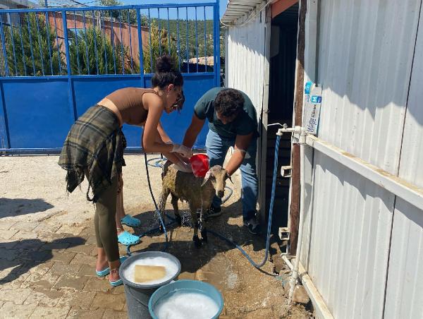 Oyuncu İrem Helvacıoğlu ise, "Çiftlikte hem yangınlardan hem de farklı felaketlerden kurtarılmış birçok hayvan var. Veteriner hekimimiz bize yanık kremlerinin nasıl sürülmesi gerektiği konusunda yardımcı oldu. Bazılarının yaraları çok derin. Ben onları gördükçe gerçekten çok kötü hissediyorum. Görünce durumun ne kadar vahim olduğunu anlıyoruz. Onlar için yararlı bir şey yapabilmek adına buraya geldik. Hepsinin yardıma ihtiyacı var. Hepsi yaralarını sarmaya çalışıyor. Şu an en azından kalben iyi hissediyorum" diye konuştu.