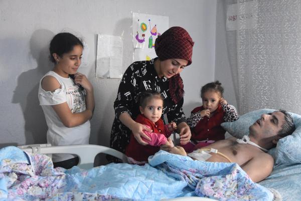 İzmir’in Konak ilçesinde, motosiklet çarpması sonucu yüzde 100 engelli olan ve dört çocuğuyla birlikte yaşam mücadelesi veren Mehmet Sürer (35), eşi Emine Sürer’in (27) kendisine söylediği türkülerle mutluluk buluyor. Yatağının başında eşinin söylediği türkülerin mutluluğu yüzüne yansıyan Mehmet Sürer’in durumu görenleri duygulandırırken, Emine Sürer ise 4 çocuğunun tüm sorumluluğunu tek başına taşıyor.