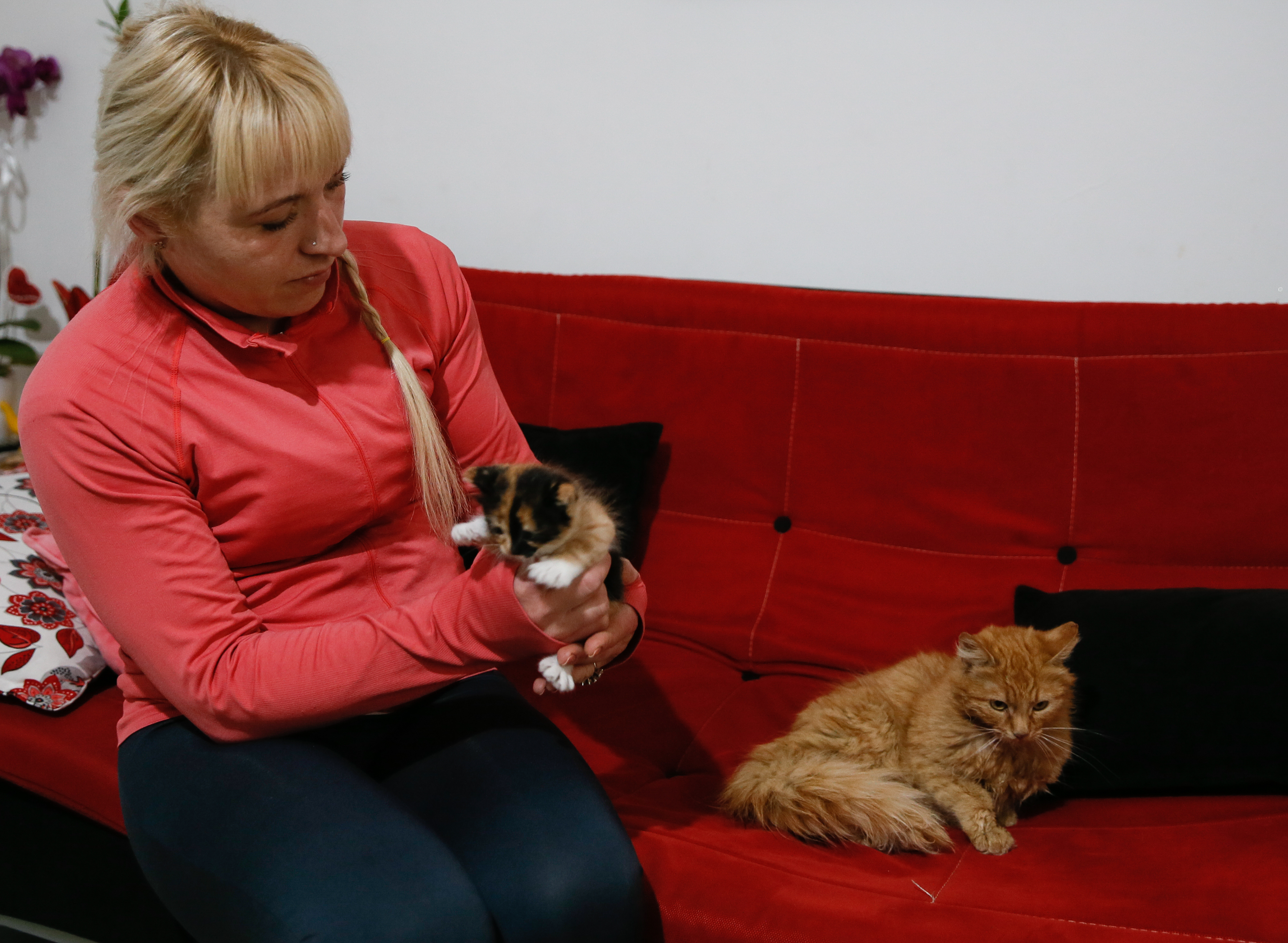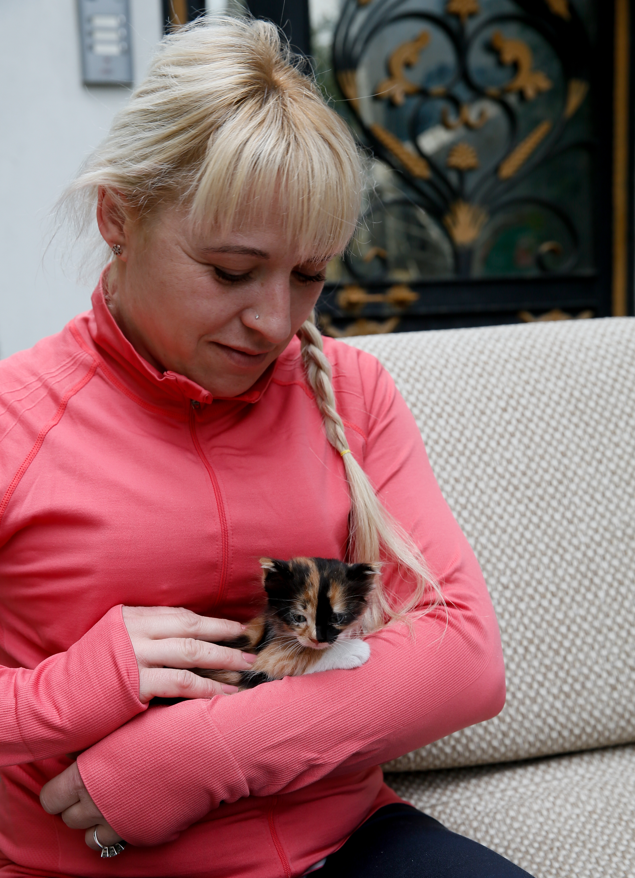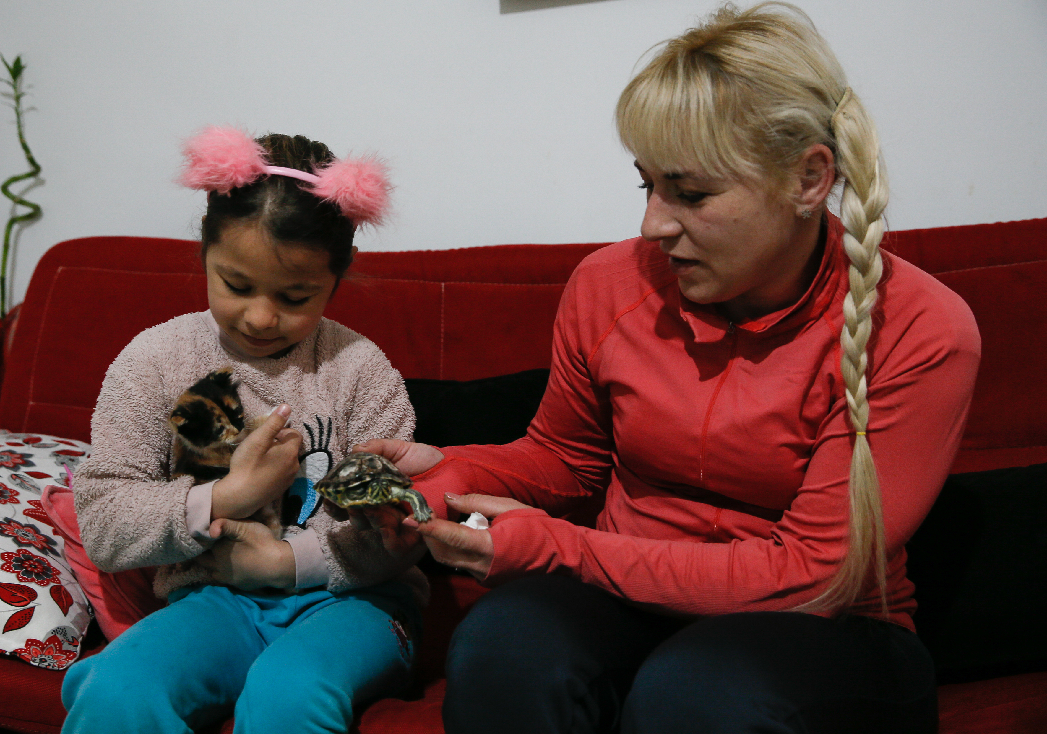 Karabağlar Belediyesi Veteriner İşleri Müdürlüğü tarafından tedavileri tamamlanan Minnoş ve yavrusunu, 15 yıl önce Türkiye'ye yerleşen ve aynı mahallede yaşayan Ukraynalı hayvansever Alina Yavuzer sahiplendi.