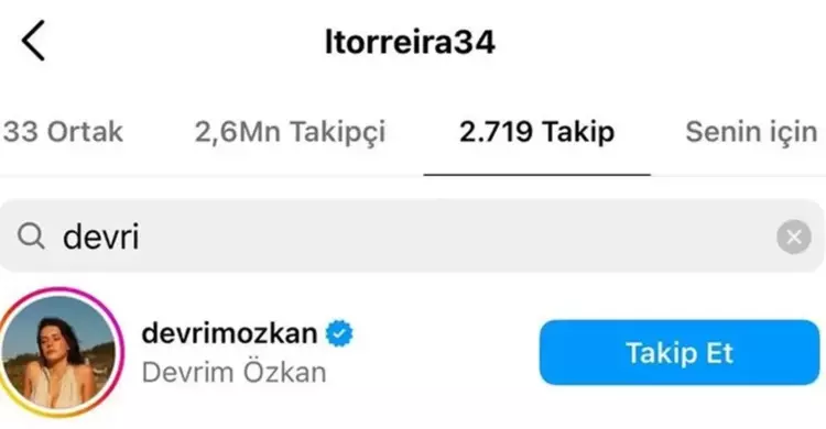 Torreira, Instagram hesabından yeniden eski aşkı Devrim Özkan'ı takibe aldı. Özkan ise ünlü futbolcunun hamlesine karşılık vermedi.
