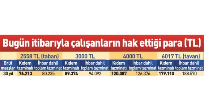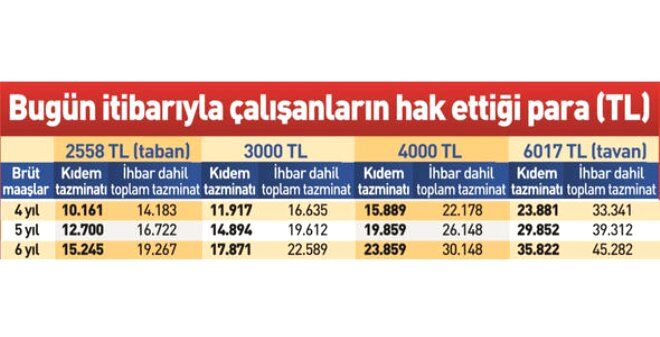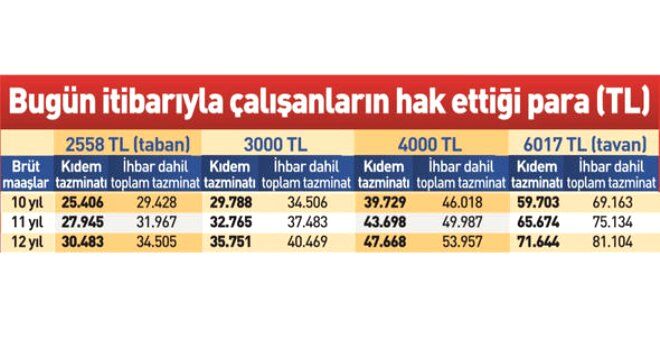 Mevcut uygulamada kıdem tazminatı, SSK'lı çalışanlara veriliyor. Kıdem tazminatına hak kazanmak için bir işyerinde en az bir yıl çalışmak gerekiyor.