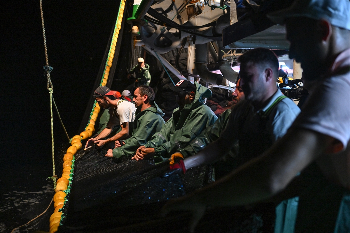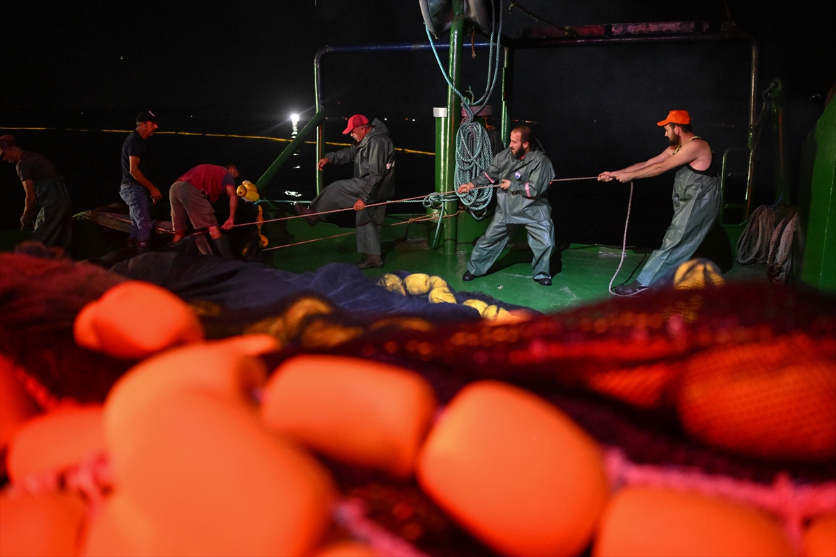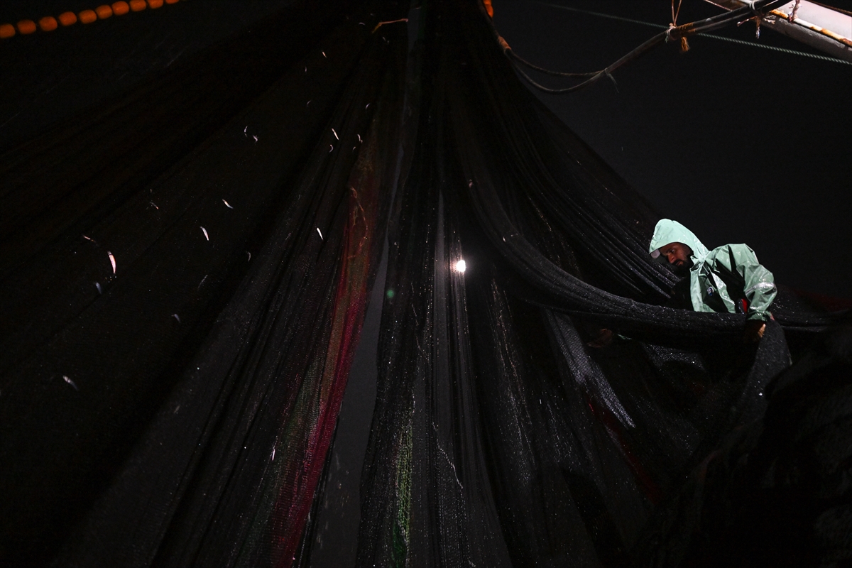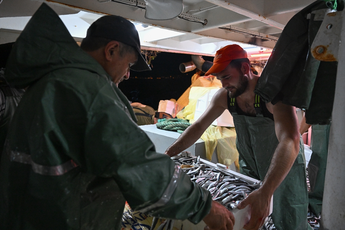 "Vira bismillah" diyerek denizin dalgalı sularıyla buluşan balıkçılar, 1 Eylül'ün ilk saatleriyle başladıkları avın ilk gününü balıklarla tamamladı.