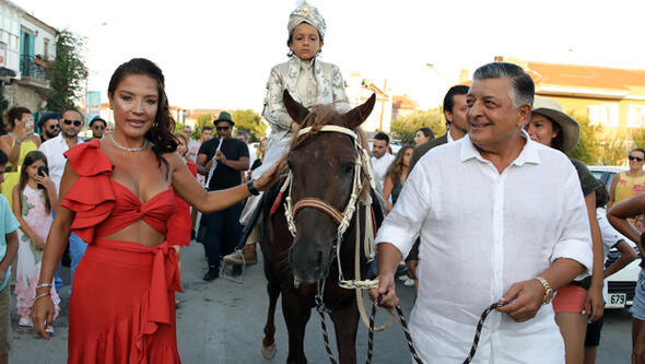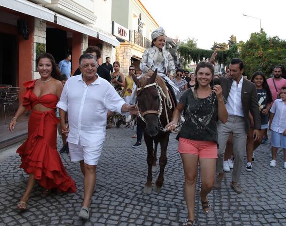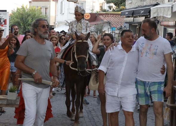 Geleneksel kutlama, evde başlayıp sokaklara taştı. 10 yaşındaki Yılmaz, sünnet kıyafetini giydikten sonra at üzerinde Alaçatı sokaklarını dolaştı.