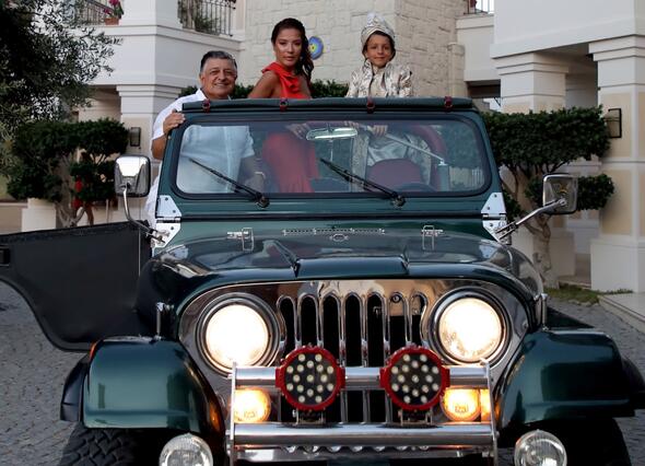 İkili, tebrikleri kabul edip kalabalığı selamlayarak çıktıkları uzun turu noktaladı. Aile, düğünün yapılacağı Solto Hotel’e de aynı şekilde alkışlar arasında yürüyerek ulaştı.
