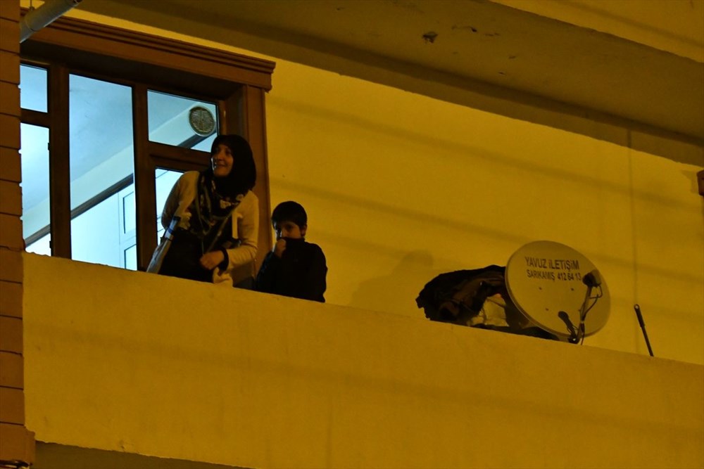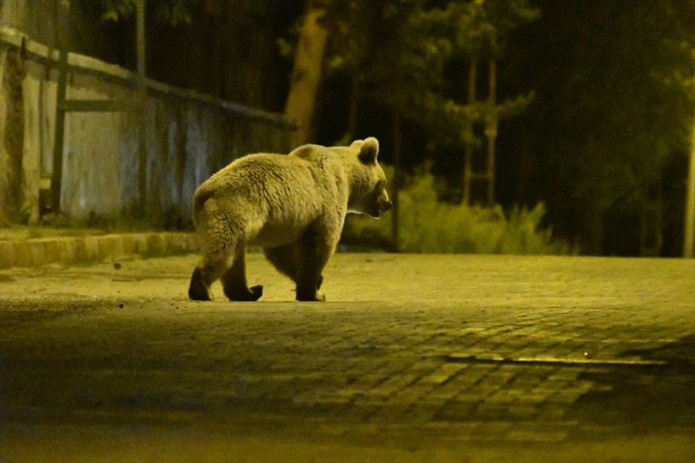 Sokaklarda gezen ayıları balkondan izleyen vatandaşlar, ayıların mahalleye inmemesi için yetkililerden yardım istedi.