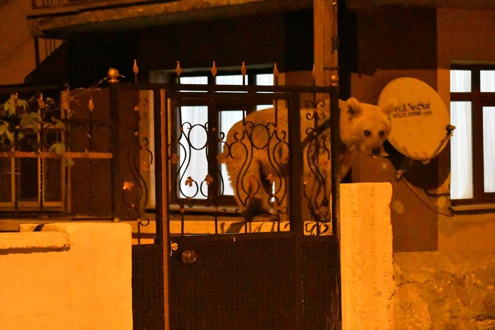 Aynı mahallede başka bir bozayı da bir evin bahçe duvarlarının üzerinde dolaştıktan sonra çöp konteynerindekilerle karnını doyurup uzaklaştı.