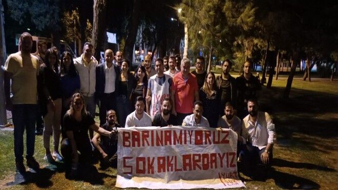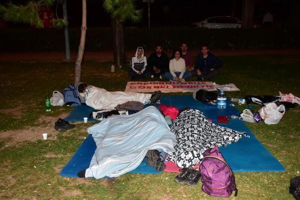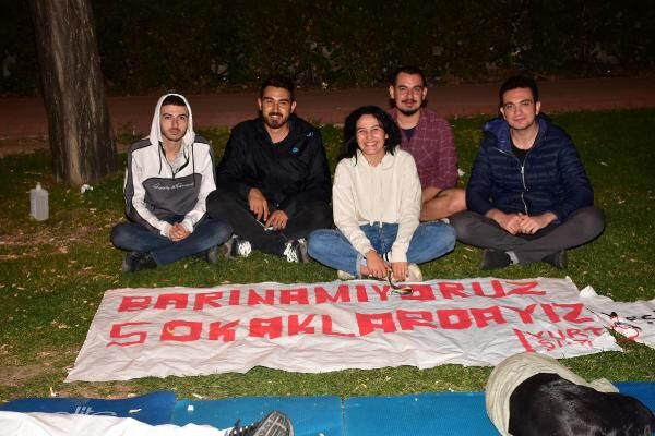 İzmir'de kiralık ev ve kalacak yurt bulmakta zorlanan üniversite öğrencileri, geceyi Buca ilçesindeki Hasanağa Parkı'nda geçirdi. Öğrenciler, 'Barınamıyoruz, sokaktayız' yazılı pankart açtı.