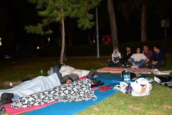 Üniversite okumak için farklı şehirlerden İzmir'e gelen öğrenciler, ev kiraları ile yurt fiyatlarının yüksek olması nedeniyle barınacak yer bulamayınca parkta sabahladı.