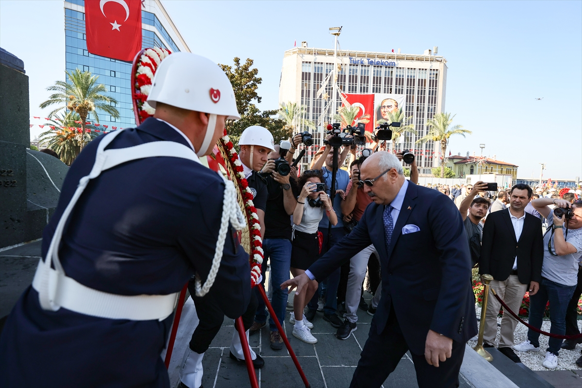 Burada İzmir Valisi Yavuz Selim Köşger, İzmir Büyükşehir Belediye Başkanı Tunç Soyer, Ege Ordusu ve Garnizon Komutanı Korgeneral Kemal Yeni, Atatürk Anıtı'na çelenk sundu.