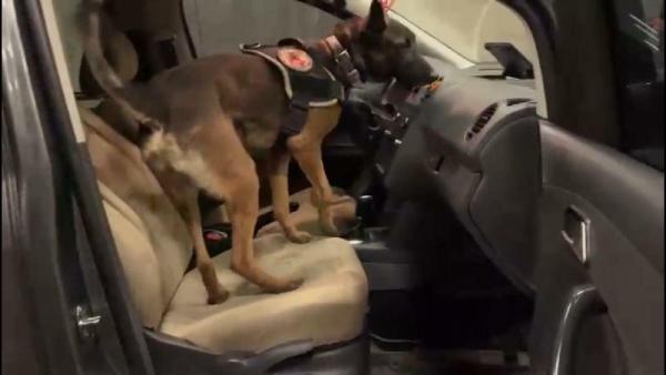 Araçta yapılan aramada, narkotik köpeği Rex, aracın torpido bölümüne tepki verdi.