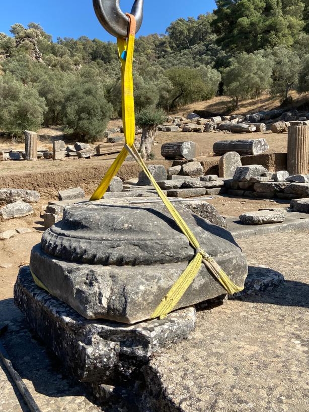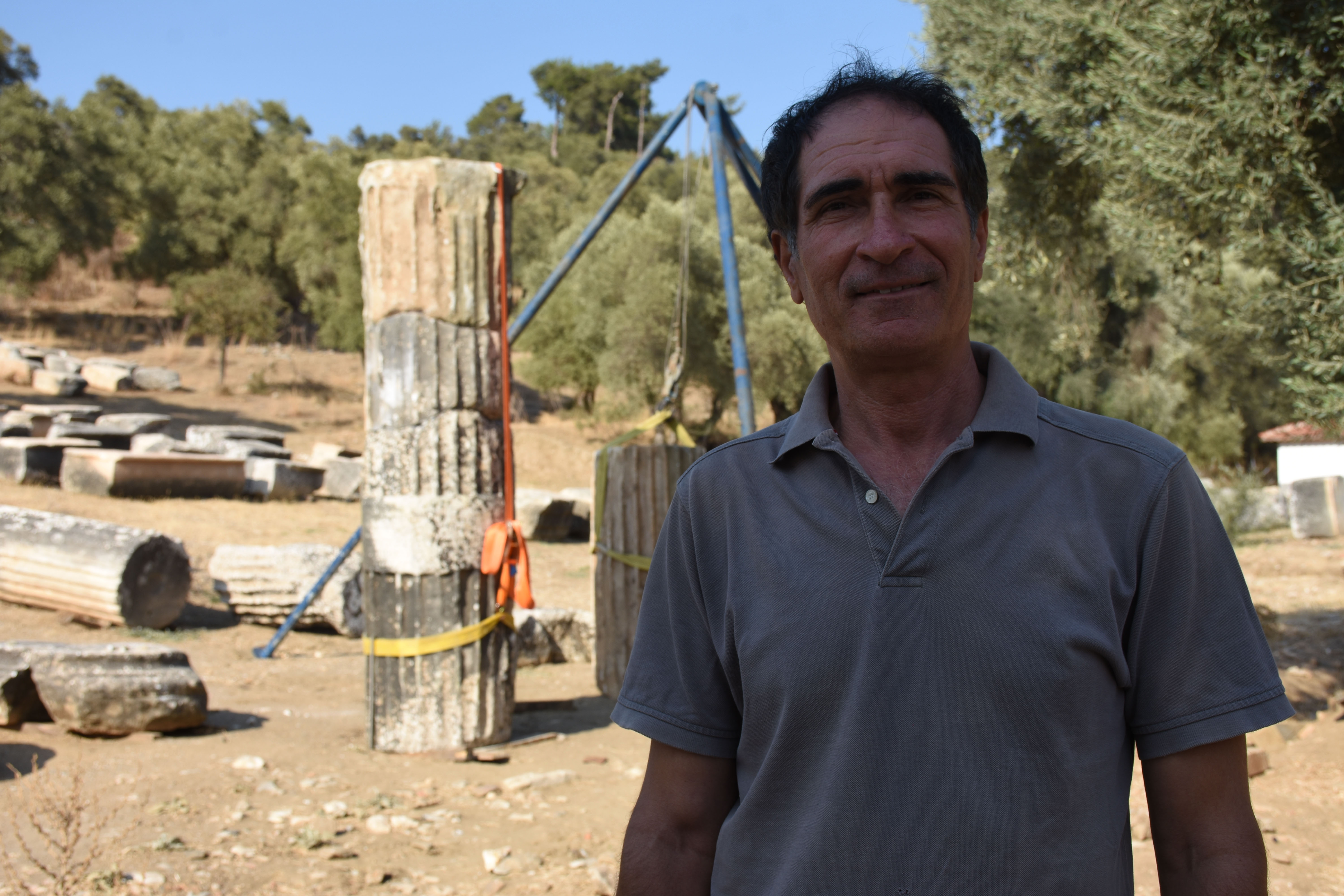 "Büyük mimari blokları birleştirmek için krom çubuklar kullanıyoruz. Sütunları bir bütün haline getirdikten sonra kaideleriyle antik dönemdeki gibi eski yerlerine koyacağız. Şu an tapınağın 16 sütunu ayakta, 10 sütunu daha üst yapılarıyla ayağa kaldıracağız. Şanslı olduğumuz taraf tapınağa ait sütunların büyük çoğunluğunun mevcut olması. Çalışmalarda modern malzeme kullanmadan uluslararası restorasyon kurallarına uyuyoruz ve bilimsel kriterlerden ödün vermiyoruz. Böylece burayı antik dönemdeki formuna kavuşturmayı hedefliyoruz."