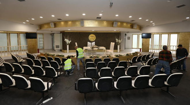 İZMİR - Konak Belediyesi'nce başlatılan tadilat çalışmaları kapsamında Kültüprak Fuar Evlendirme Dairesi'nin çatısından yer döşemesine, koltuklarından gelin odasına kadar her yeri itinalı bir şekilde elden geçiriliyor. Bugüne kadar yüz binlerce evlilik törenine ev sahipliği yapan nikah salonunun sahnesi göz seviyesine daha uygun hale gelecek şekilde alçaltıldı ve daha estetik bir görünüm sağlandı. Bina iç ve dış cehpe boyası yapılarak yepyeni bir görünüme kavuşturulan salonun pencereleri de değiştirildi. Görsellik ön planda tutularak pencere önlerine de rengarenk çiçekler dikildi.