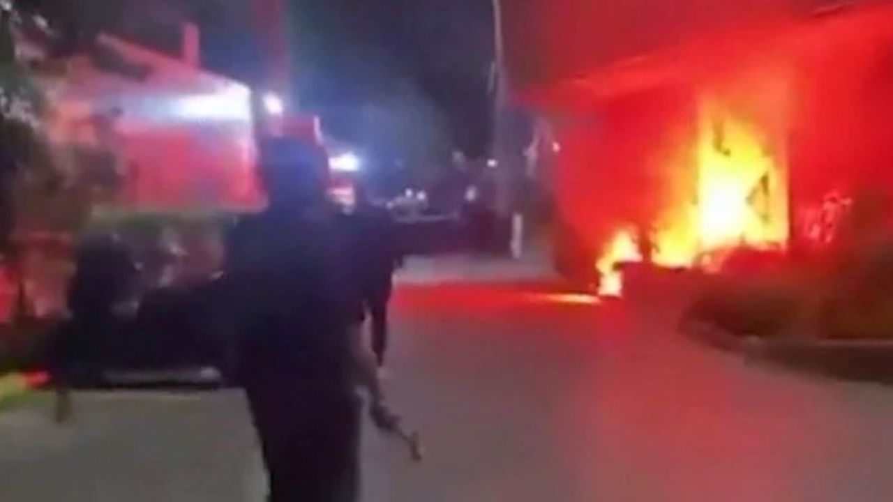 Tesislerin önüne gelen kalabalık grup, tesis binasının bulunduğu alana meşale ve yabancı maddeler fırlattı. Fırlatılan yabancı maddeler sebebiyle ufak çaplı yangın çıktı.