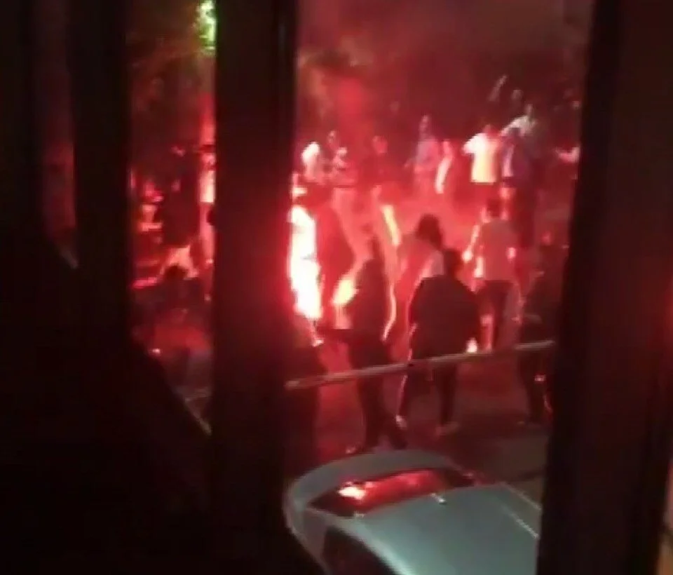 Kalabalık grup polis ekiplerinin gelmesiyle dağılırken, polis olayla ilgili inceleme başlattı. (DHA)
