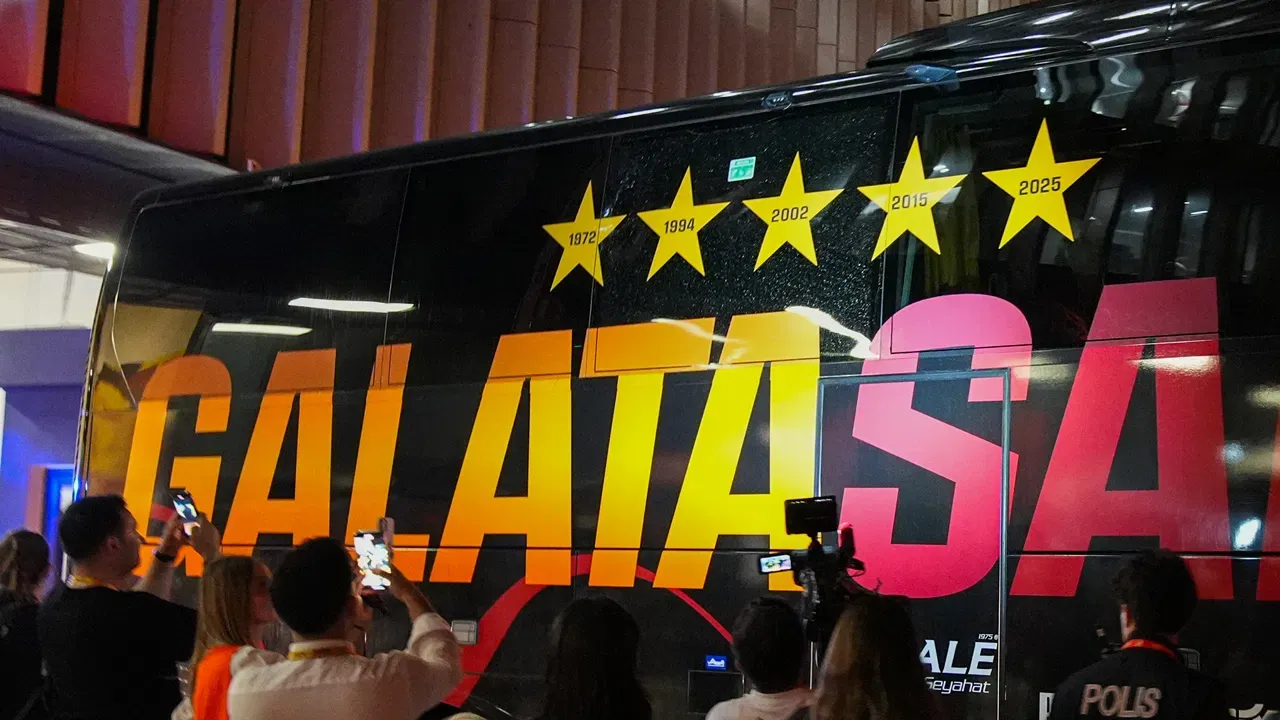 Stadyum dışında bekleyen Galatasaray'ın takım otobüsüne taşlı saldırı yapıldı.