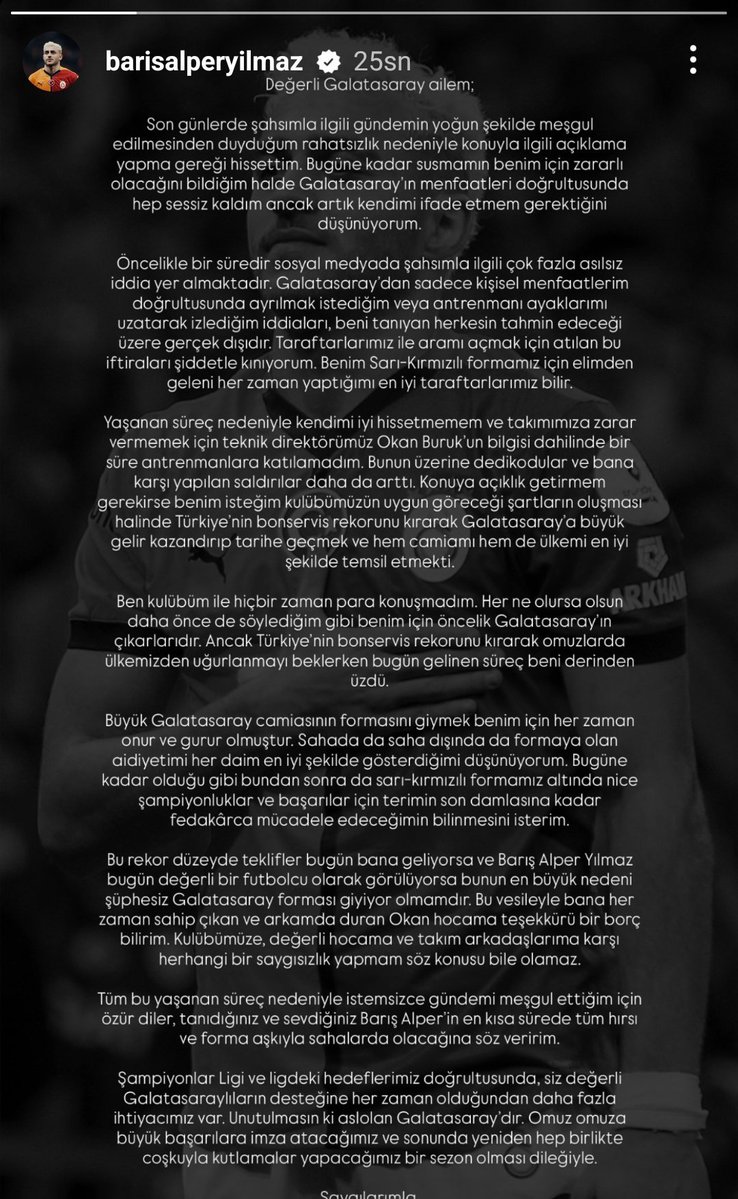 Yine sosyal medya hesabından bir paylaşım yapan Barış Alper önceliğin Galatasaray olduğuna vurgu yaptı.