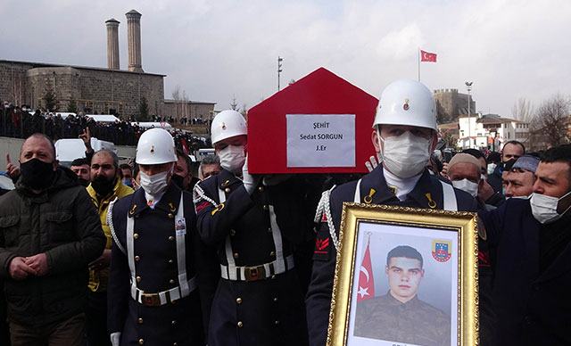 Küçük yaşta annesini kaybeden ve üvey annesi Aynur Sorgun'un büyüttüğü Sedat Sorgun'un cenazesi gece geç saatlerde Erzurum'a getirildi. Baba Nihat Sogun'un 4 erkek çocuğundan ikincisi olan şehit Sedat Sorgun'un naaşı Mareşal Çakmak Hastanesi morgundan alınarak cenaze namazının kılınacağı merkez Yakutiye ilçesindeki Narmanlı Camii'ne getirildi. Minareden yükselen selayla birlikte musalla taşına konulan şehit er Sedat Sorgun'un naşına doğru gelen baba Nihat Sorgun, önce tören kıtasında görevli askerin taşıdığı fotoğrafını öptü ardından tabuta sarılarak gözyaşı döktü. Oğlunun tabutuna sarılarak ağlayan baba Nihat Sorgun'a kardeşi Fuat Sorgun 'Abi dik dur diyerek' yardımcı oldu. Küçük yaşta annesini kaybeden şehit askerin cenazesine katılan yakınlarına Kızılay görevlileri tarafından battaniye verildi.