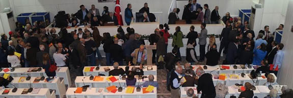 Kürsüye Yener Özkeser'in çıktığı sırada salondaki üyeler yerlerini terk ederek oy kullanmaya başladı. Özkeser salondaki kargaşa nedeni ile konuşmasını yarıda keserken, sandık önünde izdiham yaşandı.