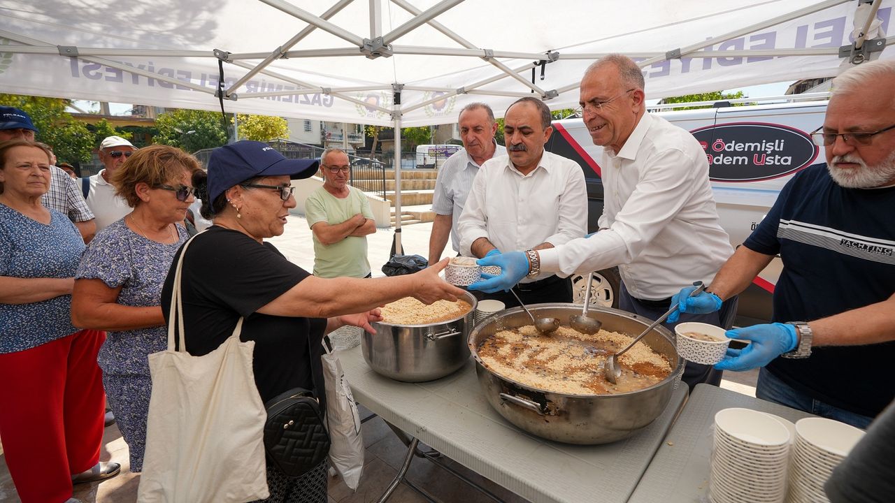 Gaziemir Belediyesi, birlik ve beraberliğin simgesi Muharrem ayında geleneksel hale getirdiği aşure ikramını bu yıl kentin üç farklı noktasında gerçekleştirdi. Sarnıç Cumhuriyet Meydanı, Aktepe Hizmet Binası önü ve Binbaşı Reşatbey Mahallesi’nde düzenlenen etkinliklerde 3 bin kişiye aşure dağıtıldı. Aşure ikramına katılan Gaziemir Belediye Başkanı Ünal Işık, kazanların başına geçerek vatandaşlara kendi elleriyle aşure ikram etti.