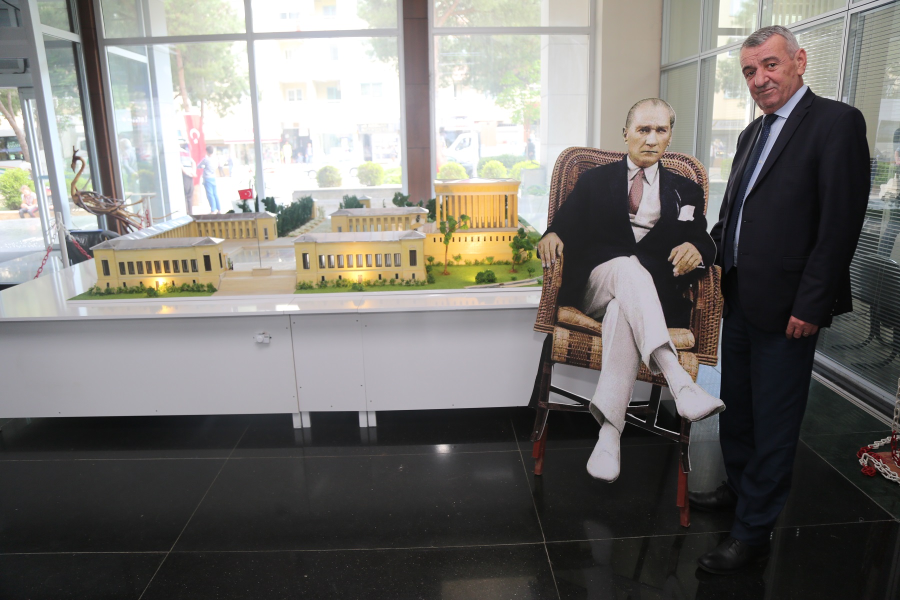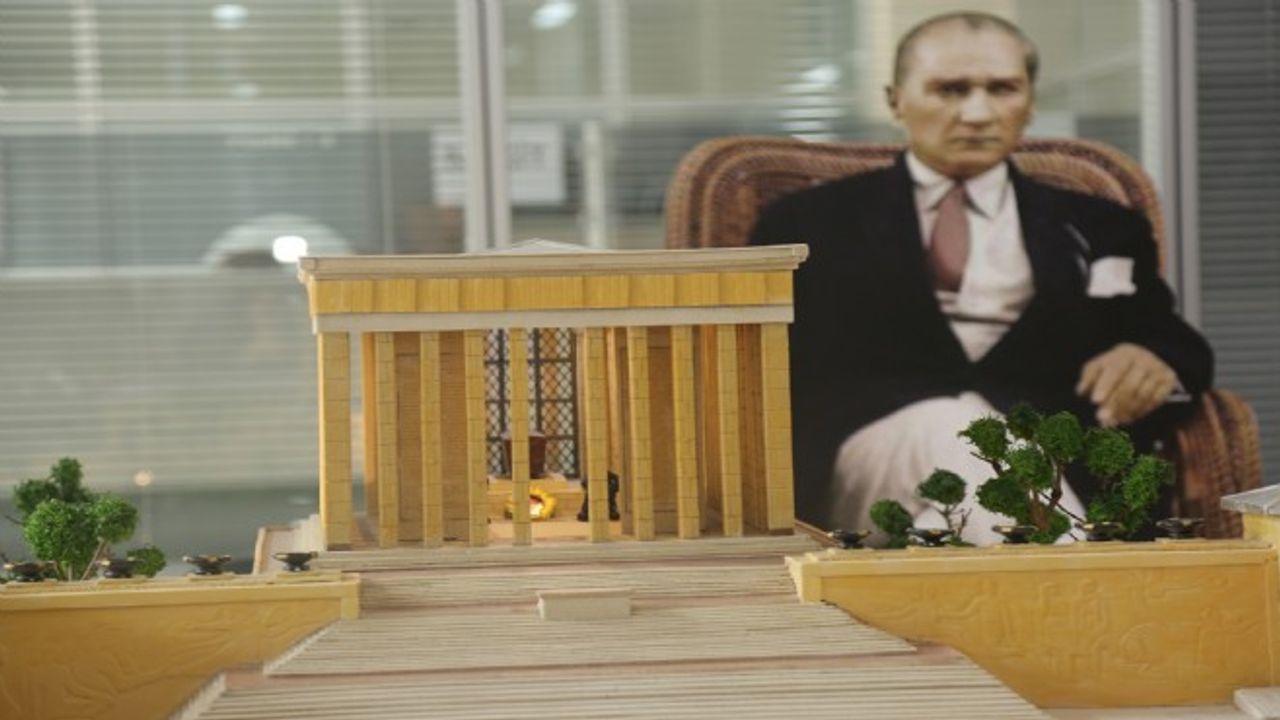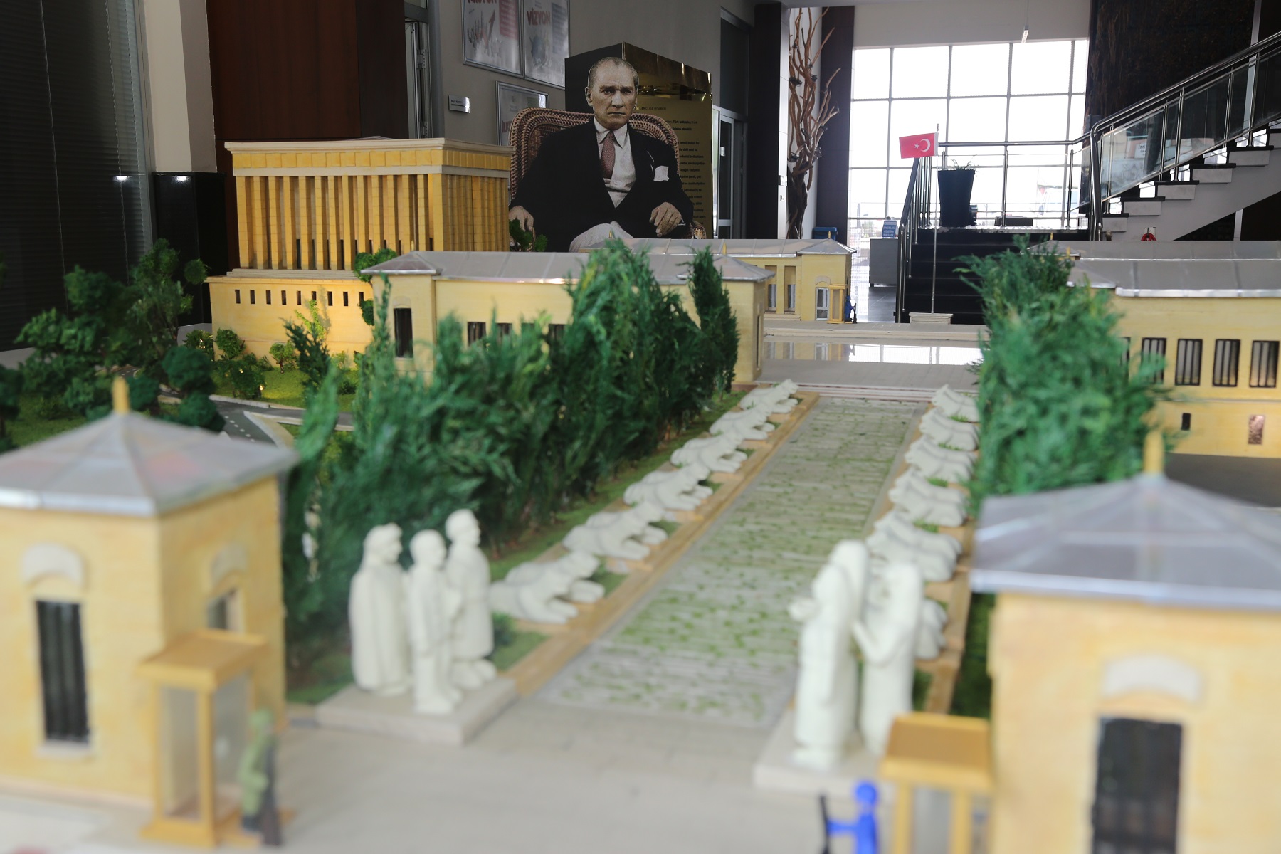 Geri dönüşüm malzemelerini kullanarak bugüne kadar kentin birçok fiziki yapısının maketini yapan Sami Denktaş, 'Yaklaşık 7 ay süren bir çalışmayla Anıtkabir projesini tamamladım. Zemin malzemesi olarak ham MDF kullandım. Onun üzerine iskelet yaptım. Ahşabı keserek üzerini kum malzemeyle kapladım. Taş şeklinde işleyip boyadım ve vernikledim. Makette yer alan ağaçları gerçek ağaç dallarından kestim. Üzerine sünger geçirdim. Çimenleri ise talaşları boyayarak hazırladım' diye konuştu.