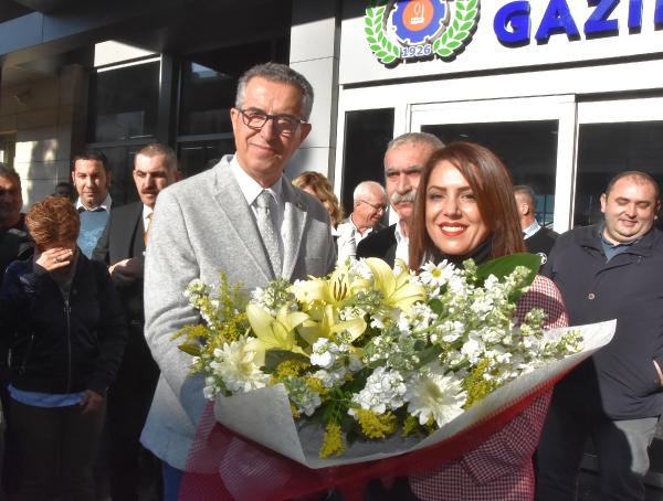 DİSK Ege Bölge Temsilcisi Memiş Sarı ise, 'DİSK ailesine hoş geldiniz. Bundan sonra sadece ücret sendikacılığı yapılmayacak. Toplumsal muhalefette de yan yana olacağız. Siz belediye başkanı seçmediniz. Bir yol arkadaşı seçtiniz. Bu kenti hep birlikte yöneteceğiniz, birlikte üreteceğiniz, bu kentin güzelleşmesinde sokağından kaldırımına kadar birlikte koşturacağınız bir yol arkadaşınız var. Yol arkadaşına sahip çıkmanızı ve Gaziemir'i büyütmenizi istiyoruz' diye konuştu.