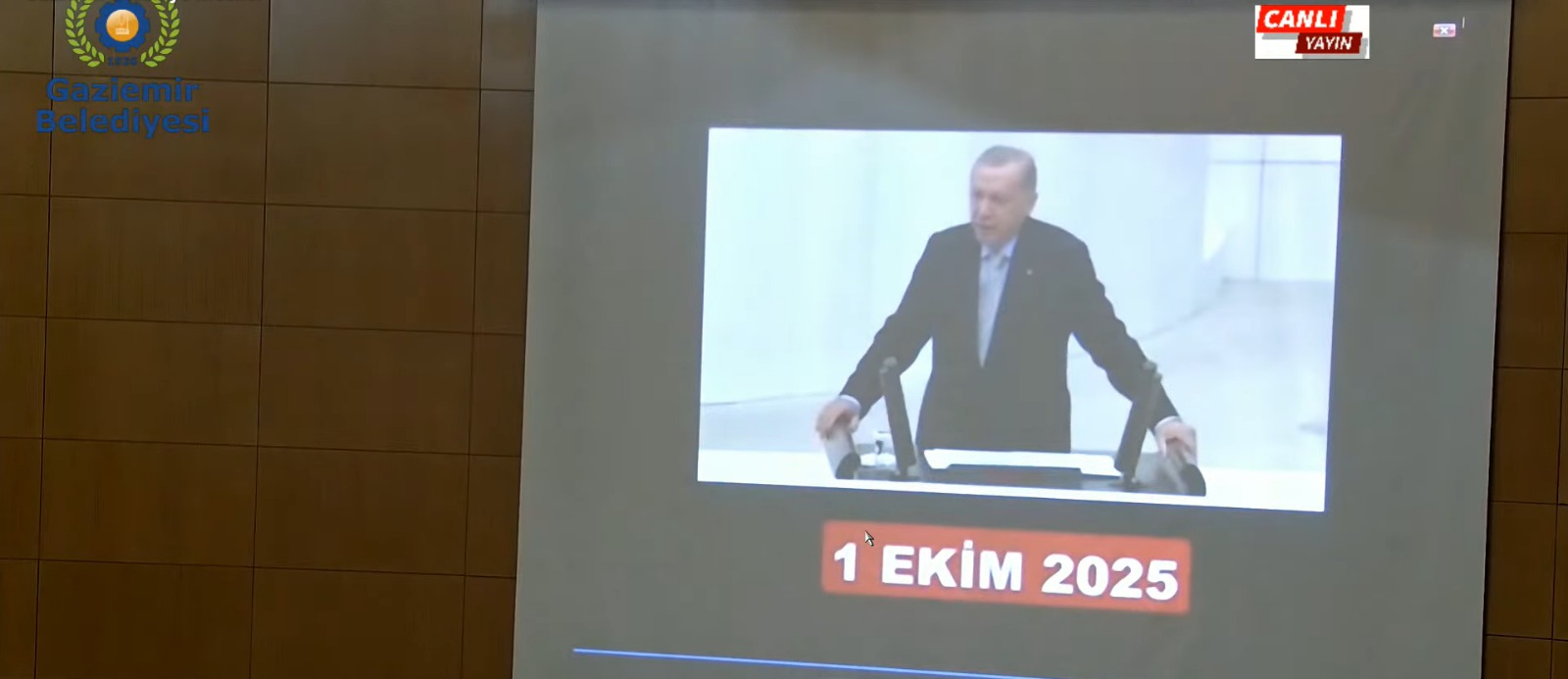 Meclis başlamadan önce Gaziemir Belediye Başkanı Ünal Işık’ın zaman zaman mecliste gösterime sunduğu sinevizyon gösterimleri eleştirildi. Başkan Işık’ın Cumhurbaşkanı Recep Tayyip Erdoğan’ın ekonomi üzerine söylediği cümleleri yansıtmasını eleştiren AK Parti Grup Başkan Vekili Hüseyin Aslan, “Gaziemir Meclisi’nde genel siyaset gündeme getirilirken çirkinleşiliyor. Belediyenin başkanı verdiği sözleri yapamadığı için ‘sizin genel başkanınız söz vermişti’ gibi videoları karşımıza çıkarıyor. Cumhurbaşkanı Gaziemir Belediyesi Meclisi’nin konusu olamaz, o dünya lideridir. Son zamanlarda dünya liderliğindeki vasıflarını sizler de görüyorsunuz. Bundan sonraki süreçte bu uygulamalar devam edecekse kararlarınıza destek veremeyiz. Bugüne kadar siyasetimizi düzgün bir şekilde yürütmeye çalıştık ve doğruları söylemeye çalıştık. Olaylar çok farklı yerlere çekiliyor” dedi.