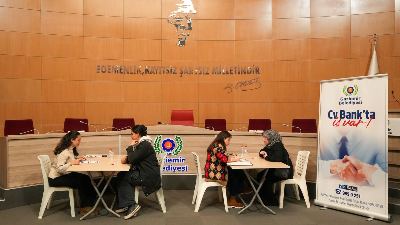 İşsizlikle mücadele kapsamında önemli bir sosyal hizmet yürüten Gaziemir Belediyesi, CV aracılığıyla istihdam olanaklarını büyüterek, işsizlik sorunuyla mücadele eden vatandaşlara destek oluyor. İş arayanlarla işverenler arasında köprü görevi yapan CV Bank birimi hem yurttaşların istihdamına katkı sunuyor hem de işverenlerin kalifiye personel ihtiyacına çözüm üretiyor. CV Bank birimi, yeni bir işe kavuşmak için belediyeye başvuru yapan yurttaşların öz geçmişlerini, özel bir yazılımla kayıt altına alıyor. Bu öz geçmişler, Ege Serbest Bölgesi (ESBAŞ) ve Sarnıç’taki sanayi kuruluşları başta olmak üzere İzmir’de faaliyet gösteren işletmelerle paylaşıyor. Vatandaşların kariyer planlaması yapmalarına ve hedefledikleri işe ulaşmalarına rehberlik eden birim, düzenlediği toplu iş görüşmelerinde, adayları işletmelerle buluşturuyor ve doğru kişi–doğru iş eşleşmesini sağlıyor. 2025 yılında bin 231 kişinin CV kaydını alan birim, bu öz geçmişleri 4 bin 676 kez firmalarla paylaştı. İş görüşmeleri neticesinde 411’i kadın, 556’sı erkek olmak üzere toplam 967 kişi yeni işine kavuştu.