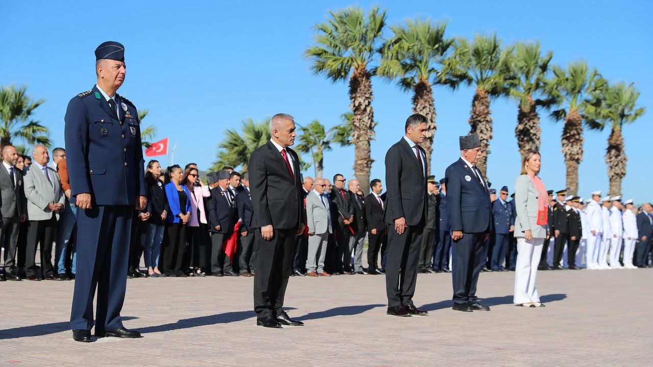Tören programı; Kaymakamlık makamı, Garnizon Komutanlığı, Belediye Başkanlığı, Türkiye Muharip Gaziler Derneği Aliağa Şube Başkanlığı ile Türkiye Harp Malulü Gaziler, Şehit, Dul ve Yetimler Derneği çelenklerinin Atatürk Anıtına sunumu ile başladı.