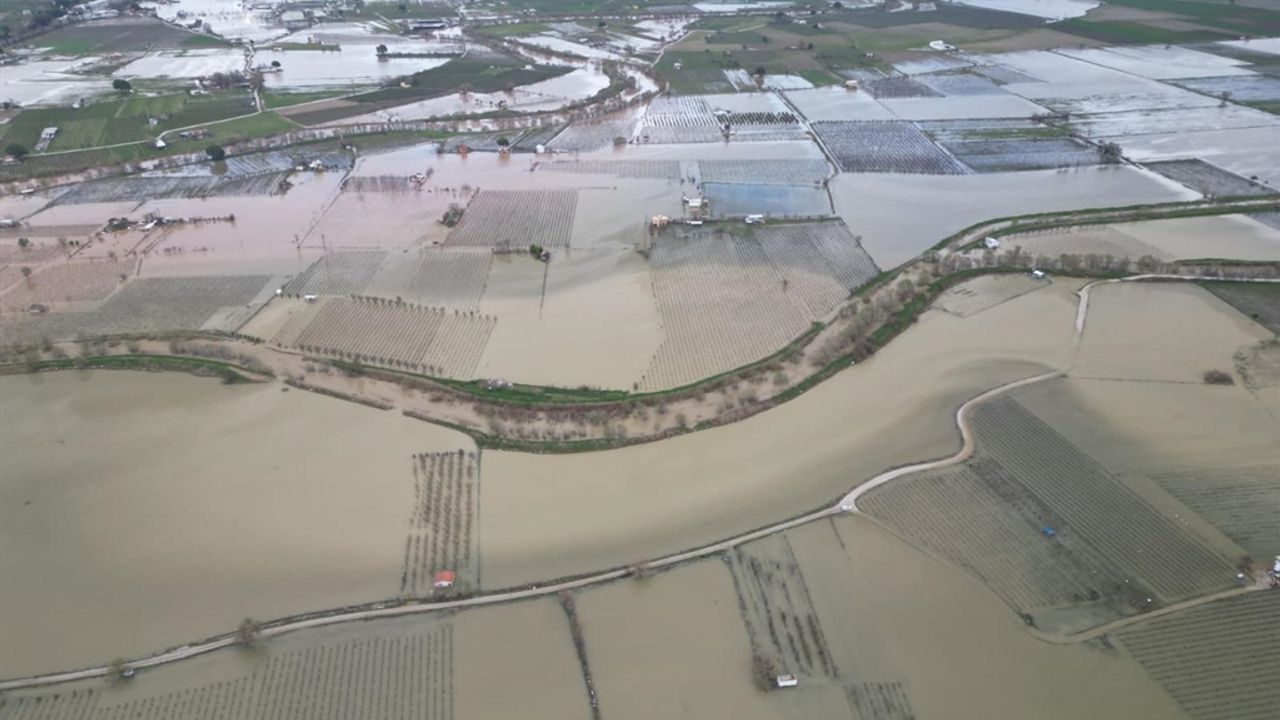 Kütahya’dan doğup İzmir’in Foça ilçesinden Ege Denizi’ne dökülen 401 kilometre uzunluğundaki Gediz Nehri’nin debisi, son günlerde etkili olan sağanakla yükseldi. Şehzadeler ilçesi sınırlarından geçen nehirde su seviyesinin yükselmesi sonucu taşkın meydana geldi. Nehrin taşması ile çevredeki tarım arazileri, üzüm bağları ve bağ evleri, su altında kaldı. Spil Mahallesi yakınlarından geçen Manisa-İzmir çevre yolunun ova kesimindeki binlerce hektarlık alan da suyla kaplandı. Suyla kaplanan Gediz Ovası, dronla görüntülendi. Öte yandan bölgede hasar tespit çalışması başlatıldı. (DHA)