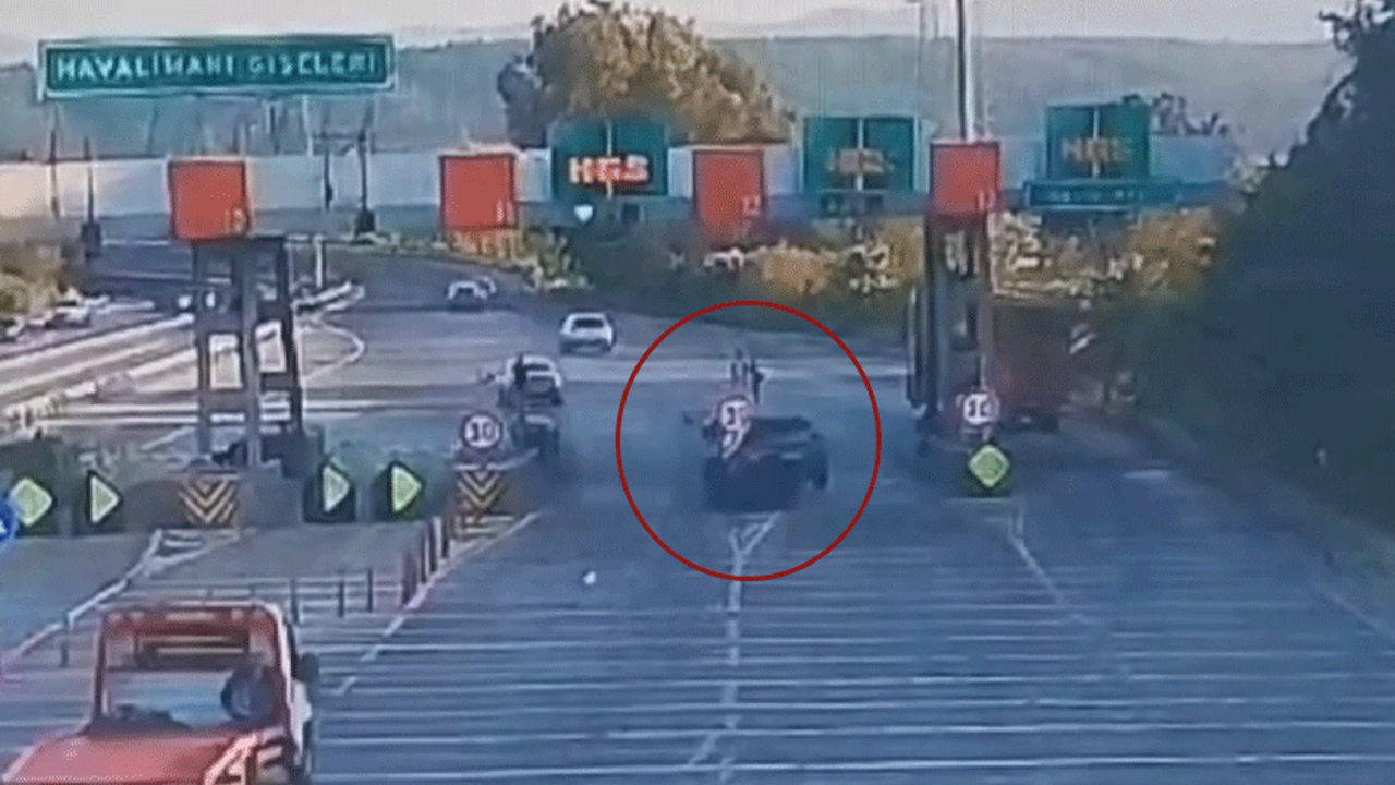 İzmir-Aydın Otoyolu Havalimanı gişelerinde 18 Nisan'da yaşanan kaza, çevredeki güvenlik kamerasınca kaydedildi.