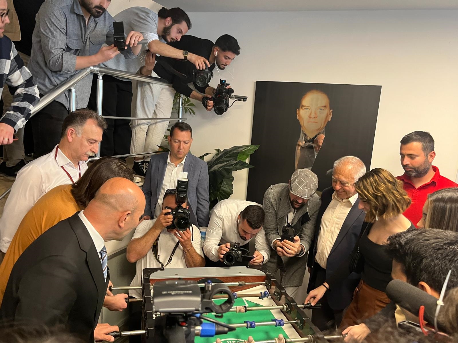 Gençlerle birlikte langırt masasına geçen Soyer, kısa bir süre masada maç yaptı. Başkan Soyer maçın ardından gençlerin duvara yazdığı dilekleri okudu.