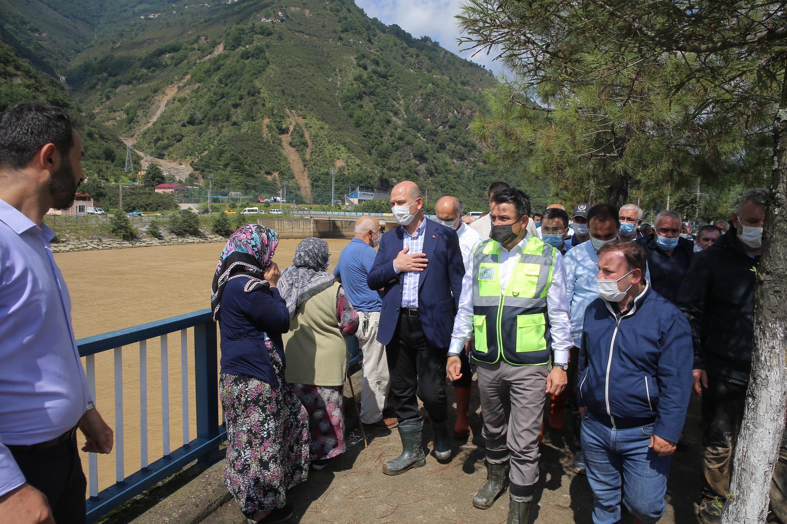 İçişleri Bakanı Süleyman Soylu, sel ve heyelandan büyük ölçüde etkilenen Dereli ilçe merkezinde, Çevre ve Şehircilik Bakanı Murat Kurum, Tarım ve Orman Bakanı Bekir Pakdemirli ile yaptığı incelemenin ardından gazetecilere değerlendirmelerde bulundu.
