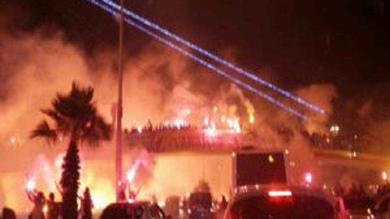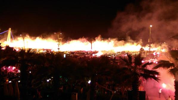Göztepeli kurmaylar ve Fatih Terim, taraftarların saat 22.00'de sahilde yapacağı meşale şovu denizden izledi. (dha)