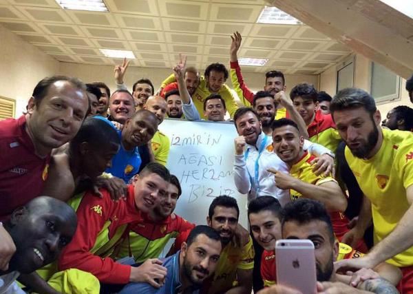 Göztepeli futbolcular, Karşıyaka galibiyetinin ardından çifte sevinç yaşadı. Ezeli rakiplerini yenerek taraftarlarla barışıp play off iddiasını sürdüren oyunculara 20'şer bin TL prim verileceği öğrenildi. Karşılaşma sonra soyunma odasına giren Başkan Mehmet Sepil'e '20... 20... 20...' şeklinde tezahüratta bulunan oyuncular isteklerinin kabul edilmesiyle büyük mutluluk yaşadı, ortalık 'Büyük başkan' diye inledi. (dha)
