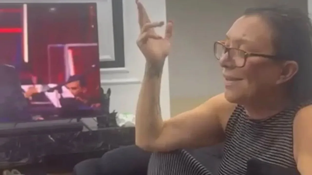 Görüntüde, Güllü'nün televizyonda çalan şarkıya eşlik ettiği, kızı Tuyan Ülkem Gülter'in televizyonun önünde dans ettiği görüldü.