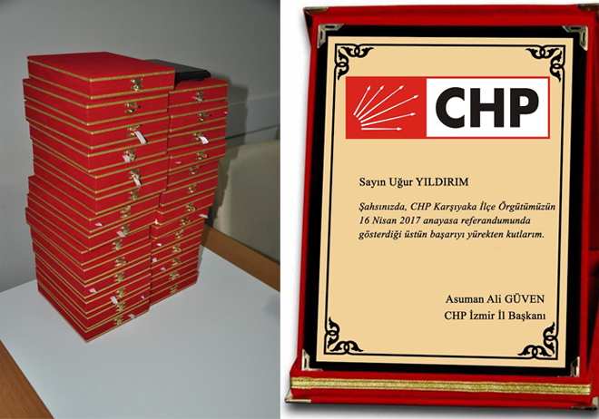 Güven, 'İlçe başkanlarımız sürece önemli katkı koydular. Özellikle 8 ilçede belediye başkanlarımız, milletvekillerimiz de örgütlerimize destek oldular. Bu çalışmalar 30 ilçeyi almamızı sağladı. Bu İzmir'in başarısıdır. Her şeye rağmen kazanılmış bir başarıdır. Örgütümüze süreçte çalışmalardan dolayı jest yapmak istedik. Zor olan yerler vardı, taktirlerimizi sunmak istiyoruz. İlçelerimize giderek vermek istiyoruz. Karşıyaka'dan başladık, Narlıdere ve diğerleri diye gidecek' dedi.