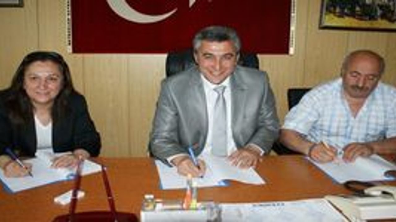 İZMİR - Güzelbahçe Belediye Başkanı Mustafa İnce ile Tümbel-Sen Genel Başkanı Vicdan Baykara ve Tümbel-Sen 2 No’’lu Şube Başkanı Nami Arslanbuğa arasında sözleşme imzalandı.