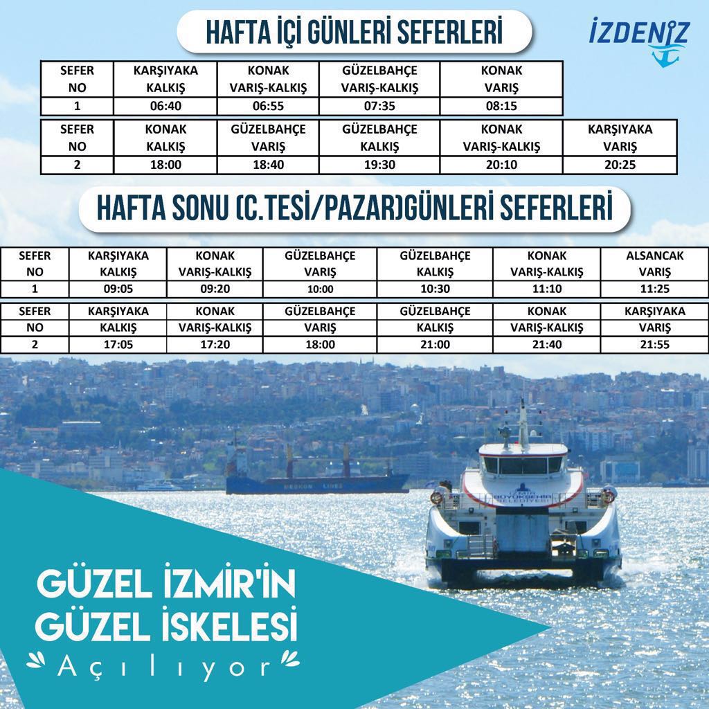 İzmir Büyükşehir Belediyesi'nin Ulaştırma Denizcilik ve Haberleşme Bakanlığı'ndan gerekli izin sürecinin tamamlanmasının ardından başlayacağı Güzelbahçe seferlerinin ücretleri tam 7 TL, öğretmen 6, öğrenci ise 5 TL olarak belirlendi. İzmirliler Güzelbahçe seferleri için de 'İzmirim' kartı kullanacak.