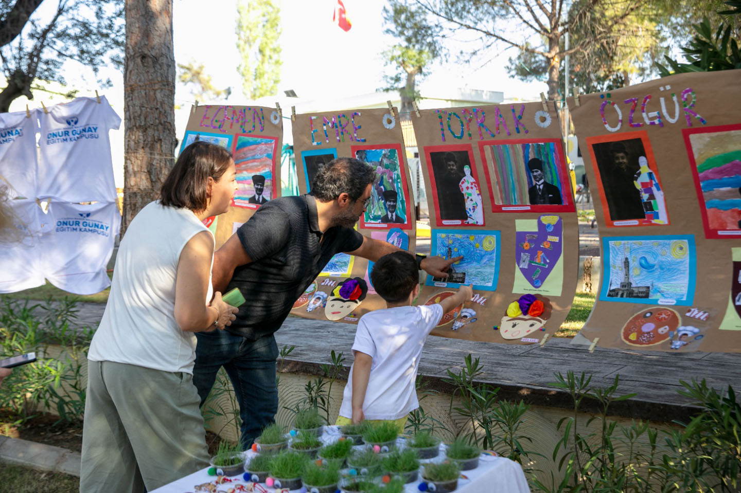 Konuşmaların ardından yaz kampına katılan çocuklara katılım belgeleri takdim edildi. Başkan Günay, öğretmenlere ve kurum yöneticilerine teşekkür ederek çiçek sundu. Ardından öğrenci ve velilerle birlikte, çocukların hayal gücünü yansıtan sergiyi gezdi. Etkinlik çocukların aileleriyle çekilen hatıra fotoğraflarıyla sona erdi.