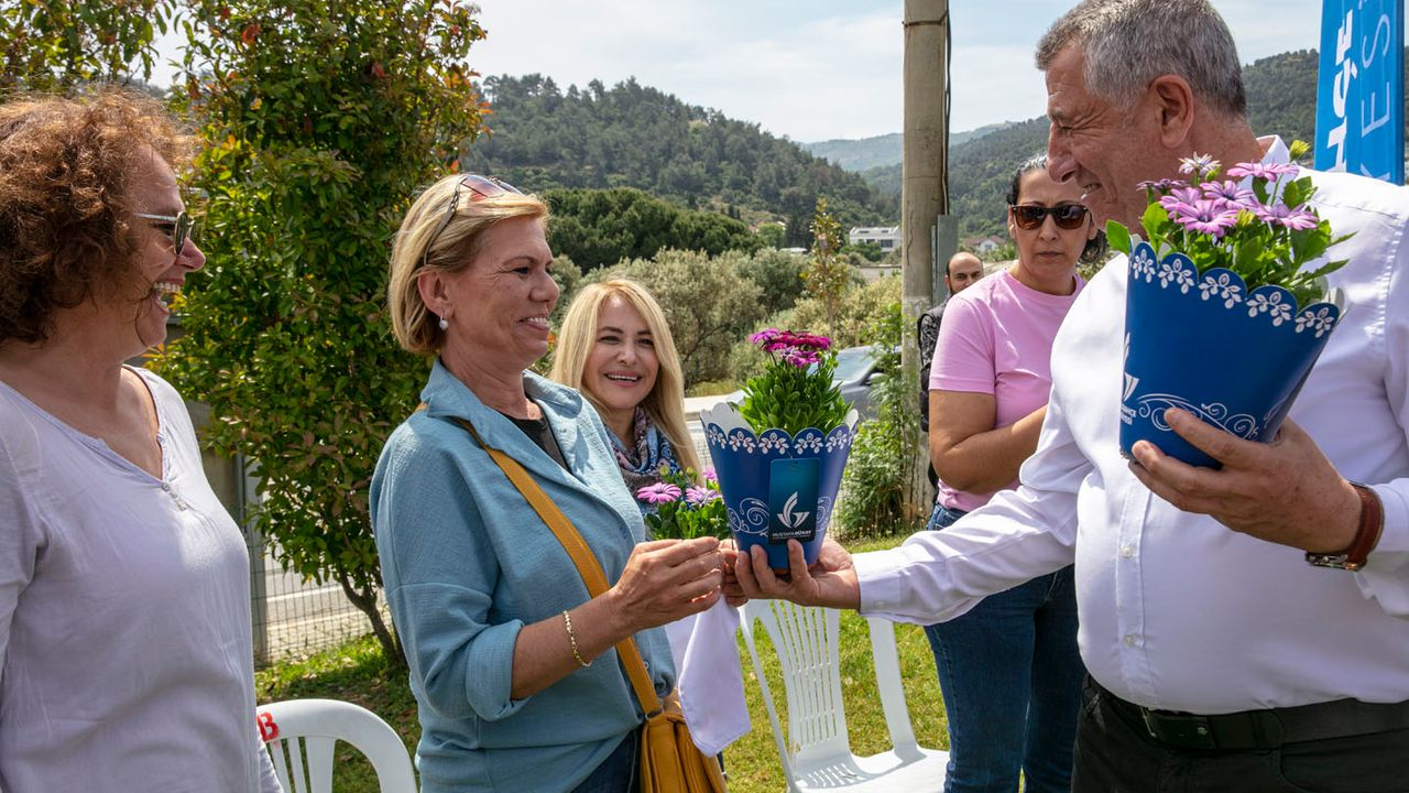 Başkan Günay Eşi Nermin Günay ve meclis üyeleriyle birlikte annelere çiçek ve fular dağıtarak annelerin gününü kutladı.