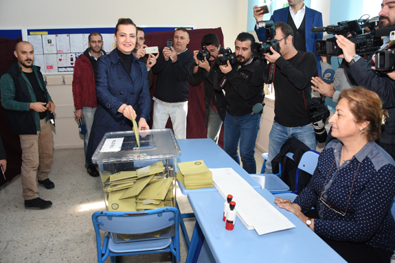 AK Parti Genel Başkan Yardımcısı ve İzmir milletvekili adayı Nükhet Hotar, oyunu Karşıyaka ilçesi Mavişehir İlkokulu'nda kullandı. 1319 numaralı sandıkta oyunu kullanan Hotar okul çıkışında gazetecilere açıklama yaptı. 1 Kasım seçimlerinin hayırlar getirmesi temennisinde bulunana Hotar, 'Ülkemizin elde ettiği kazanımları bundan sonraki süreçte riske atmama ve bunları daha da geliştirme gibi çok hassas bir dönemin olduğunu hep beraber izliyoruz. İnşallah bu seçim bunlara imkan sağlayacak, hep birlikte daha iyi bir ülkede yaşamamızı sağlayacak sonuçlar getirsin. Genel olarak İzmir'deki seçim ortamına ve atmosferine baktığımızda sanıyorum vatandaşlarımızın yüksek bir katılım oranı olacak. Gayet güzel, sakin insanların birbirine saygılı olduğu bir ortamı da görüyoruz' dedi. Seçim sonuçlarını Ankara'daki AK Parti Genel Merkezinden takip edeceğini aktaran Nükhet Hotar, 'Ankara'da seçim sonrası inşallah balkon konuşmamızı yapacağız. Sayın Başbakanımızın gerçekleştireceği konuşmada bizde ekibi olarak yanında olmuş olacağız.' diye konuştu.
